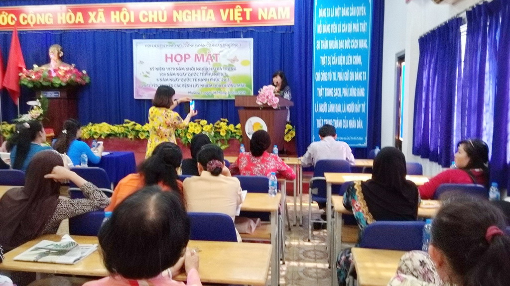 Để trang bị cho cán bộ hội viên Phụ nữ phường , cán bộ công đoàn phường hiểu biết thêm kiến thức về các bệnh lây truyền qua đường máu, trong buổi họp mặt Hội nghị cũng được chị Võ Thị Thanh Tâm – Gíam đốc Trung tâm Công tác Xã hội Ánh Dương thuộc Hội Liên hiệp Phụ nữ Thành phố Hồ Chí Minh. Trang bị thêm kiến thức để phòng chống các bệnh lây truyền qua đường máu./.