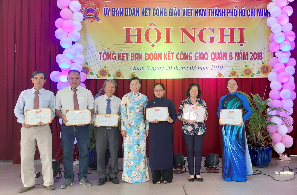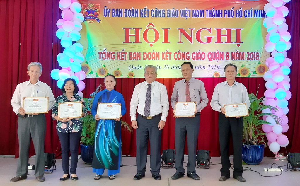 Nhân dịp này, Ủy ban Mặt trận Tổ quốc Quận 8 đã quyết định khen thưởng 5 tập thể và 9 cá nhân có thành tích xuất sắc trong hoạt động của Ban Đoàn kết Công giáo Quận 8 năm 2018.