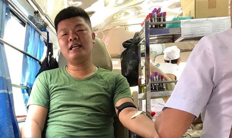 Các chiến sĩ dân quân tự vệ tham gia hiến máu