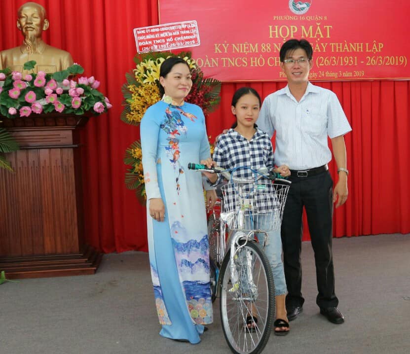 Lãnh đạo Đảng ủy, Mặt trận phường trao quà học tập là phương tiện đi học cho học sinh có hoàn cảnh khó khăn