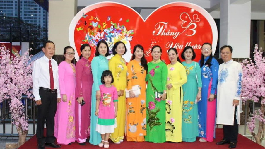 Bà Nguyễn Thanh Xuân –Phó Bí thư Quận ủy Quận 8 cùng với các chị lãnh đạo Hội đồng nhân dân; Hội Liệp hiệp Phụ nữ Quận 8 tham quan gian hàng bán sản phẩm áo dài