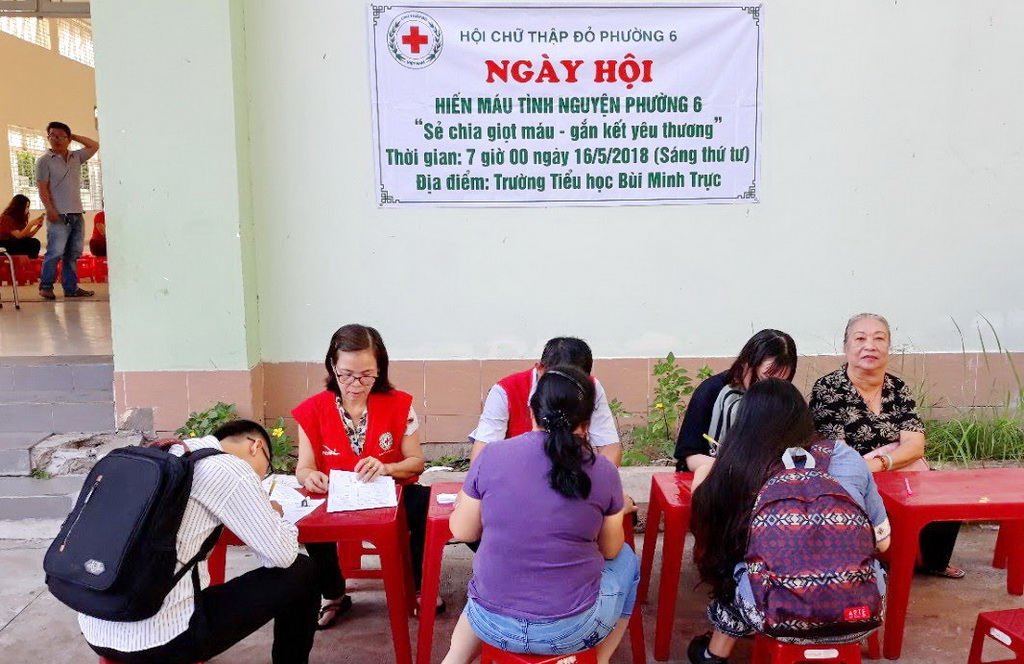 Những năm qua, Hội Chữ thập đỏ Phường 6 luôn quan tâm đẩy mạnh phong trào hiến máu tình nguyện, thực hiện đạt và vượt chỉ tiêu quận giao. Năm 2018, Hội đã vận động hiến máu nhân đạo được 344ca/333ca (đạt 103,3%). Năm 2019, Hội được quận giao chỉ tiêu là 447 ca (tăng 114 ca so năm 2018), Hội đã tổ chức vận động hiến máu tình nguyện đợt 01 được 115 ca.