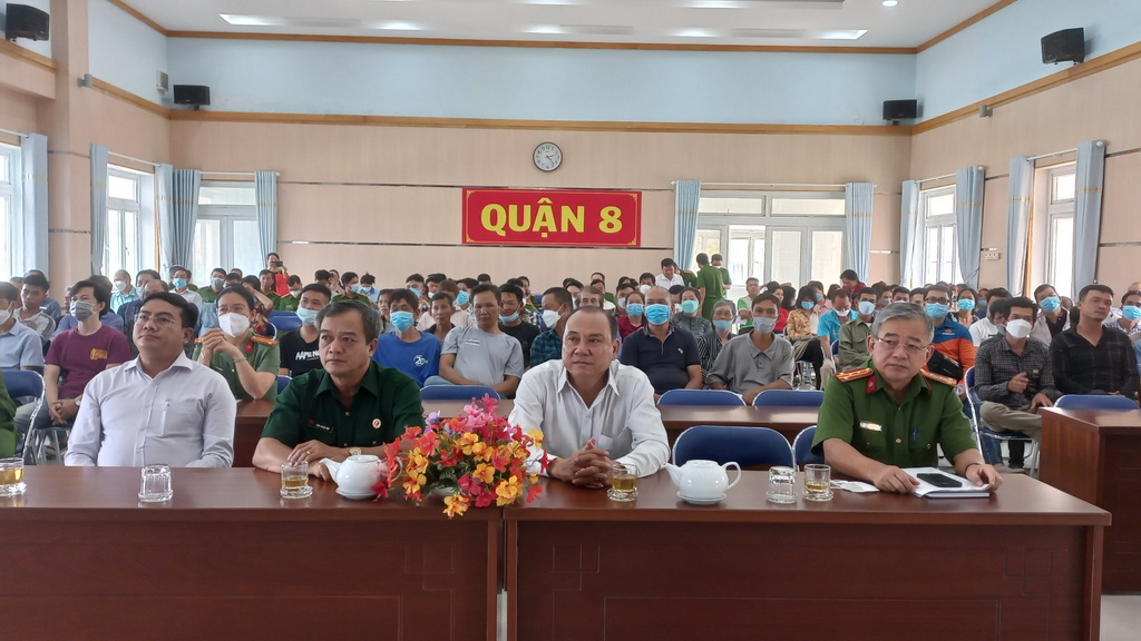 Tham dự hội nghị có ông bà: Thạch Nghi Xuân - Phó Trưởng Ban Dân tộc - Tôn giáo Ủy ban MTTQ Thành phố HCM; Đại tá Lê Văn Bích - UVBTV Quận ủy, Trưởng Công an Quận 8; Mai Hồng Phong - Phó Chủ tịch Thường trực Ủy ban MTTQ Quận 8; Nguyễn Thị Thiên Nga - Quận ủy viên, Chủ tịch Hội Liên hiệp phụ nữ Quận 8; Trung tá Cao Thị Bé Ba - Đội trưởng Đội xây dựng phong trào Công an Quận 8; Đại đức Thích Thông Chấn - Ủy viên Ban trị sự Giáo hội Phật giáo Việt Nam Quận 8, cùng các đồng chí là Thường trực Ủy ban MTTQ, Hội Liên hiệp phụ nữ 16 phường cùng tham dự.