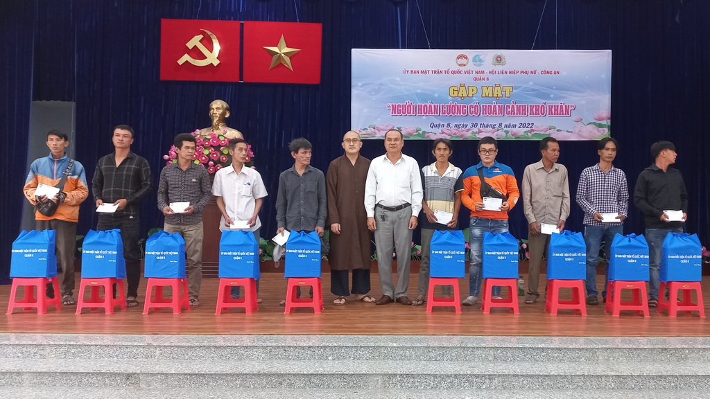 Chiều ngày 30/8/2022, Ủy ban MTTQ Việt Nam Quận 8 phối hợp cùng Hội Liên hiệp phụ nữ và Công an Quận 8 tổ chức Gặp mặt, tặng quà cho Người hoàn lương có hoàn cảnh khó khăn trên địa bàn quận.