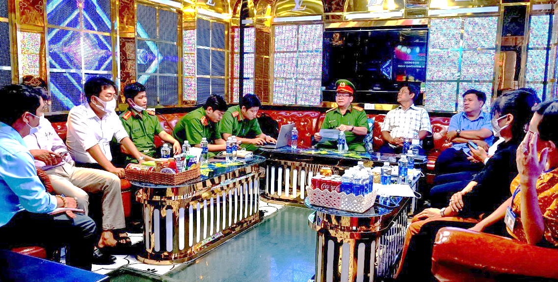 Thượng tá Trương Thành Lanh - Phó Trưởng Công an Quận 8 triển khai và yêu cầu người đại diện Công ty Công ty Trách nhiệm hữu hạn Một thành viên Thu âm Oxy (karaoke OXY) và hộ kinh doanh karaoke Bi Bi chấp hành nghiêm việc đình chỉ hoạt động kinh doanh dịch vụ karaoke khi chưa đủ điều kiện về an ninh trật tự, chưa được thẩm duyệt phòng cháy chữa cháy.