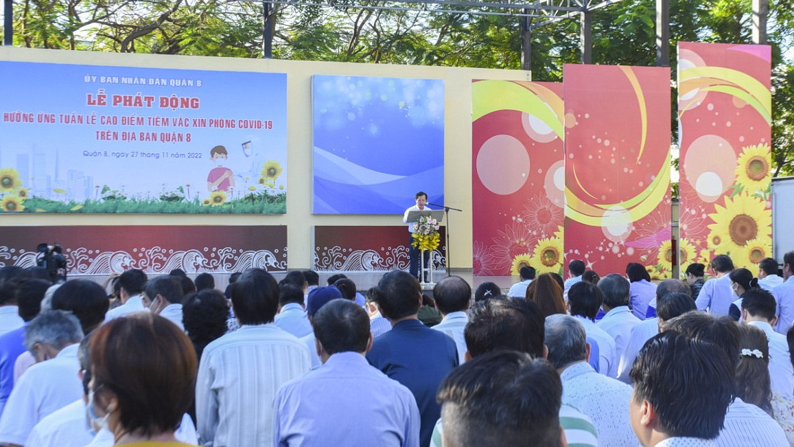 Tại lễ phát động, Trưởng Phòng Y tế quận Lê Hồng Tây cho biết tổng số có 26 điểm tiêm vắc - xin phòng COVID-19 trên địa bàn quận, được triển khai trong 02 tuần lễ cao điểm từ ngày 17/11 đến nay. Cụ thể có 20 điểm tiêm cố định và 6 điểm tiêm lưu động tại các chợ và chung cư trên địa bàn, đối với các điểm tiêm lưu động được triển khai vào buổi tối với các đội tiêm của Trung tâm Y tế, Bệnh viện Phục hồi chức năng và Bệnh viện Quận 8. Nhằm hưởng ứng tuần lễ cao điểm tiêm vắc - xin phòng COVID-19, đã tổ chức thêm 4 điểm tiêm tại các Trường THCS Chánh Hưng, THCS Tùng Thiện Vương, THCS Lê Lai và THCS Phú Lợi.