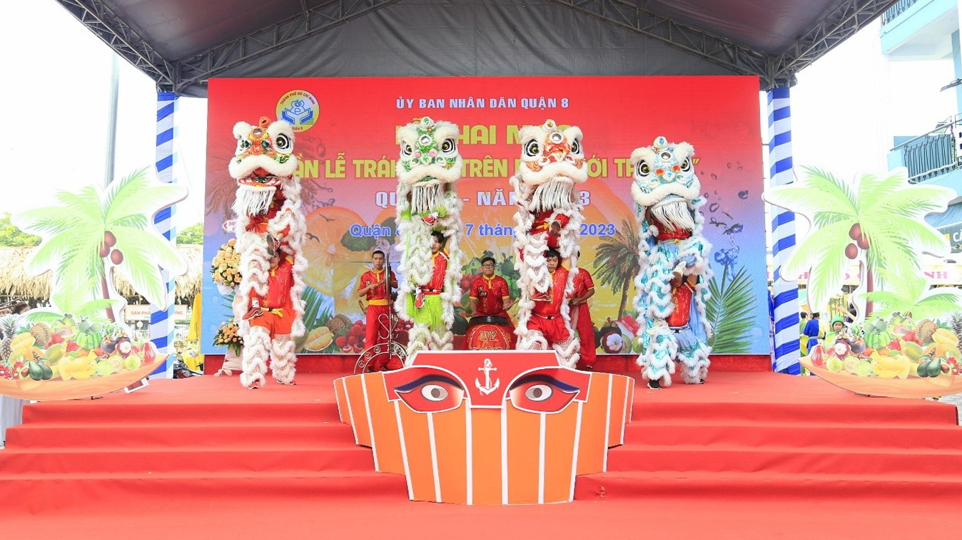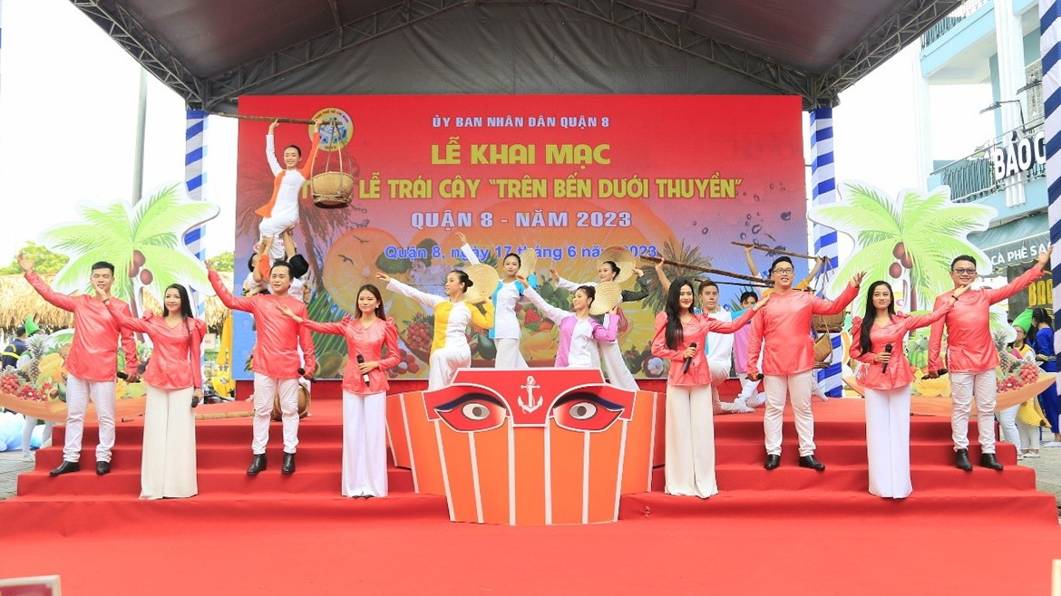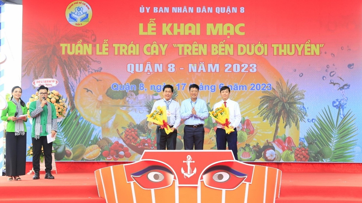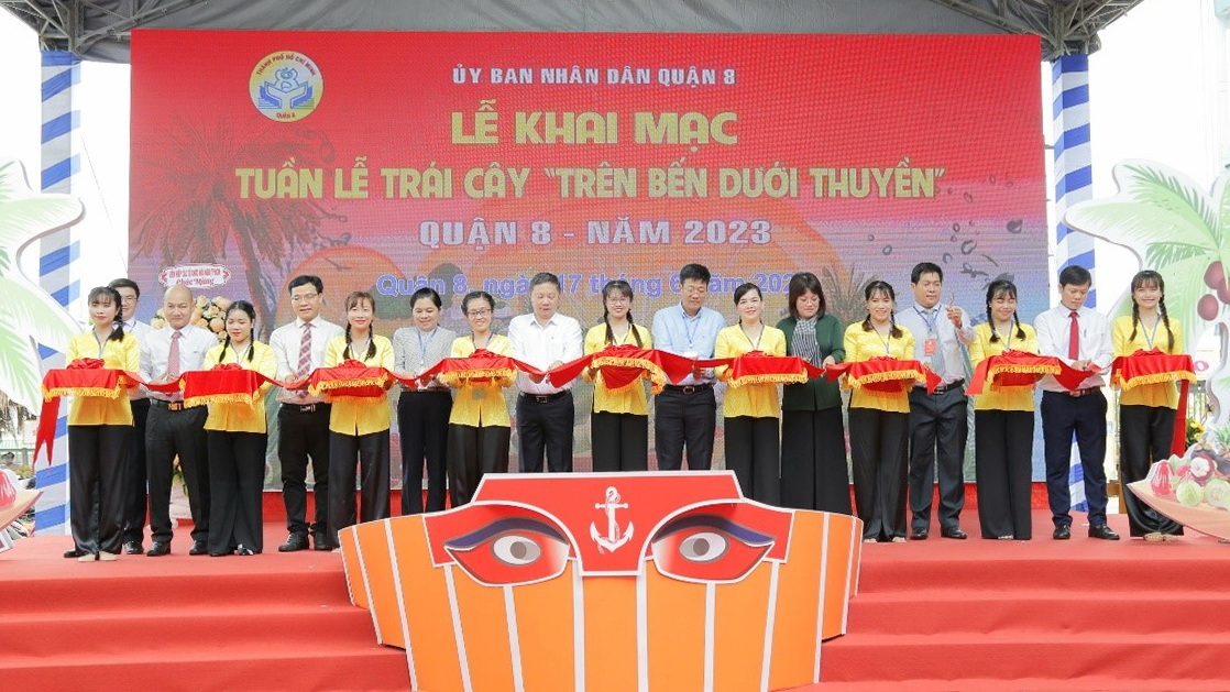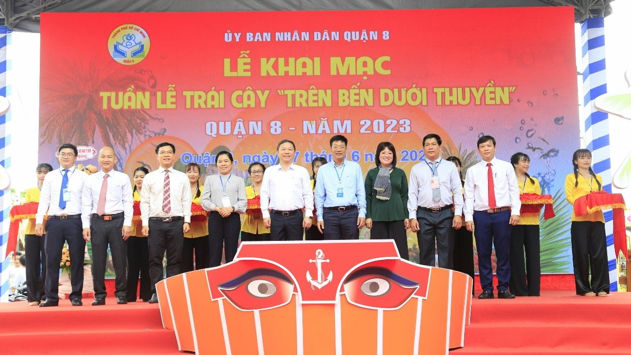 Sáng 17/6, UBND Quận 8 tổ chức khai mạc Tuần lễ trái cây “Trên bến dưới thuyền” lần 2 năm 2023, tại tuyến đường Nguyễn Văn Của - Bến Bình Đông, Phường 13. Đến dự có các chí: Dương Anh Đức, TUV, Phó Chủ tịch UBND Thành phố; Nguyễn Trần Phượng Trân, Thành ủy viên, Chủ tịch Hội Liên hiệp Phụ nữ Thành phố; Trần Thanh Tùng, Phó Bí thư Quận ủy, Chủ tịch UBND Quận; Nguyễn Thị Thu Hoa, UVBTV, Phó Chủ tịch UBND Quận 8.