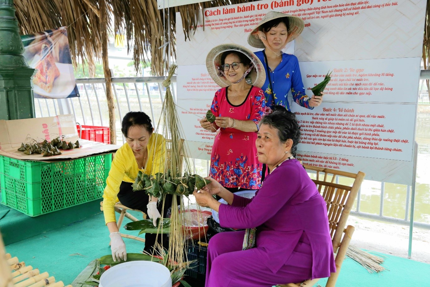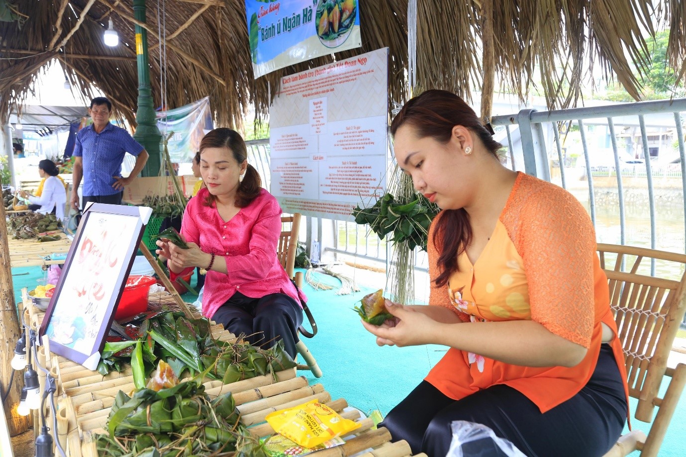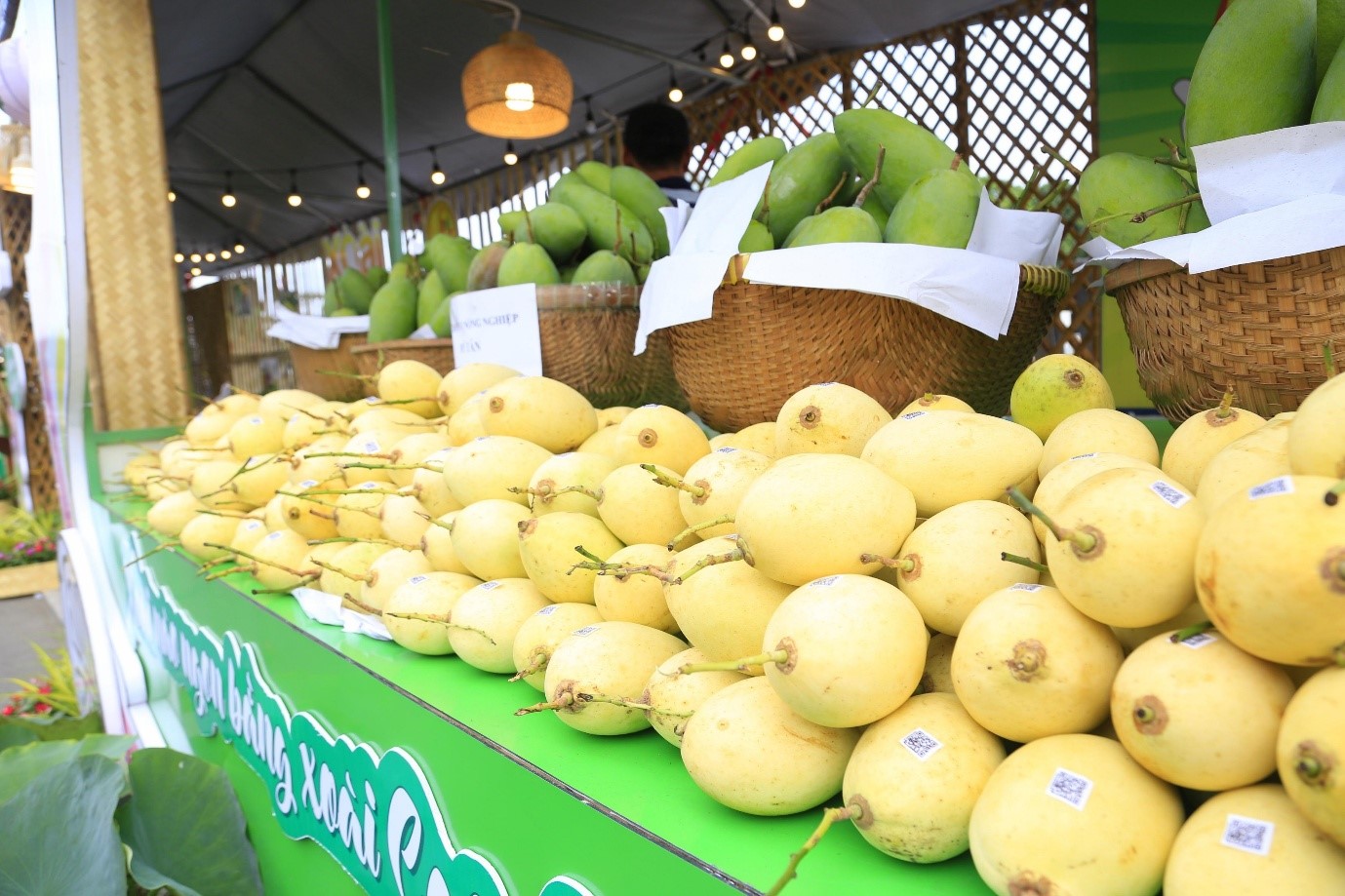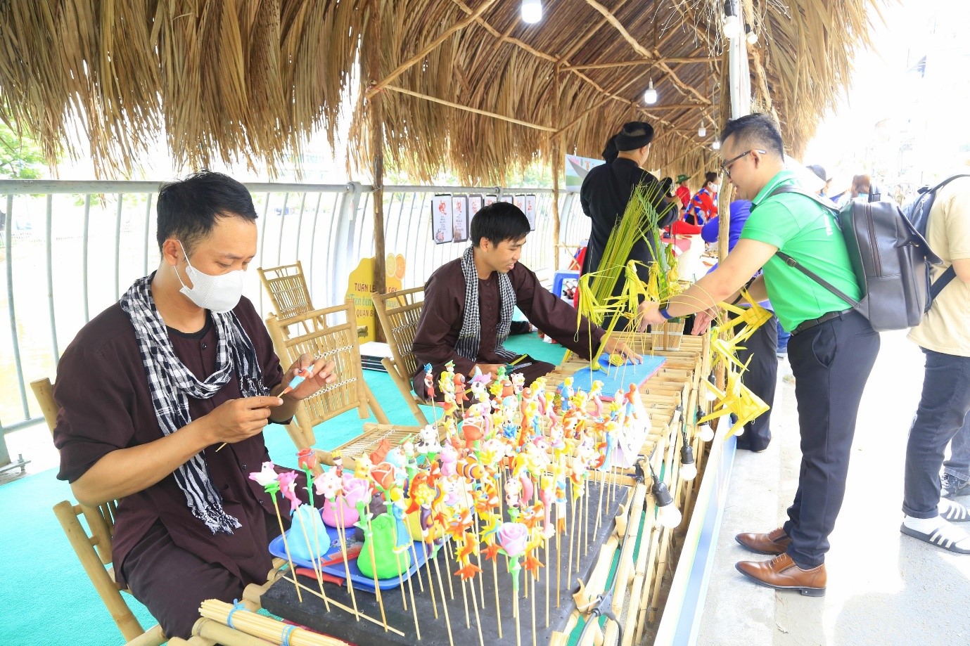 Dọc tuyến đường Bến Bình Đông là các gian hàng nhà lá được trang trí tỉ mỉ, trưng bày các loại trái cây đẹp, là đặc sản của các vùng miền, Đông Nam Bộ và Tây Nam Bộ. Ngoài ra còn có các gian hàng như: trải nghiệm gói nấu bánh ú lá Tre, bánh Bá trạng dành cho Du khách tham quan và tự tay gói bánh theo hướng dẫn của Nghệ nhân và chụp ảnh lưu niệm; gian hàng ẩm thực, giới thiệu và bán các sản phẩm được chế biến từ các loại trái cây, các loại bánh dân gian, truyền thống Nam bộ; gian hàng với hoạt động xếp lá dừa nghệ thuật; gian hàng với loại hình nặn, tạo hình nghệ thuật từ đất sét màu...