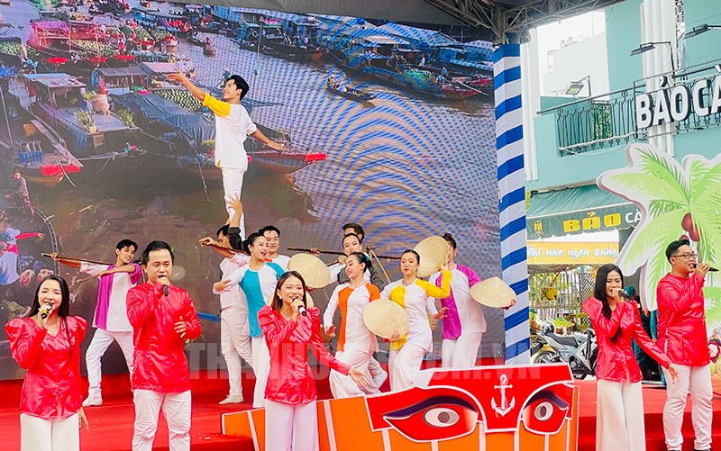 Tiết mục văn nghệ chào mừng Tuần lễ trái cây “Trên bến dưới thuyền”.