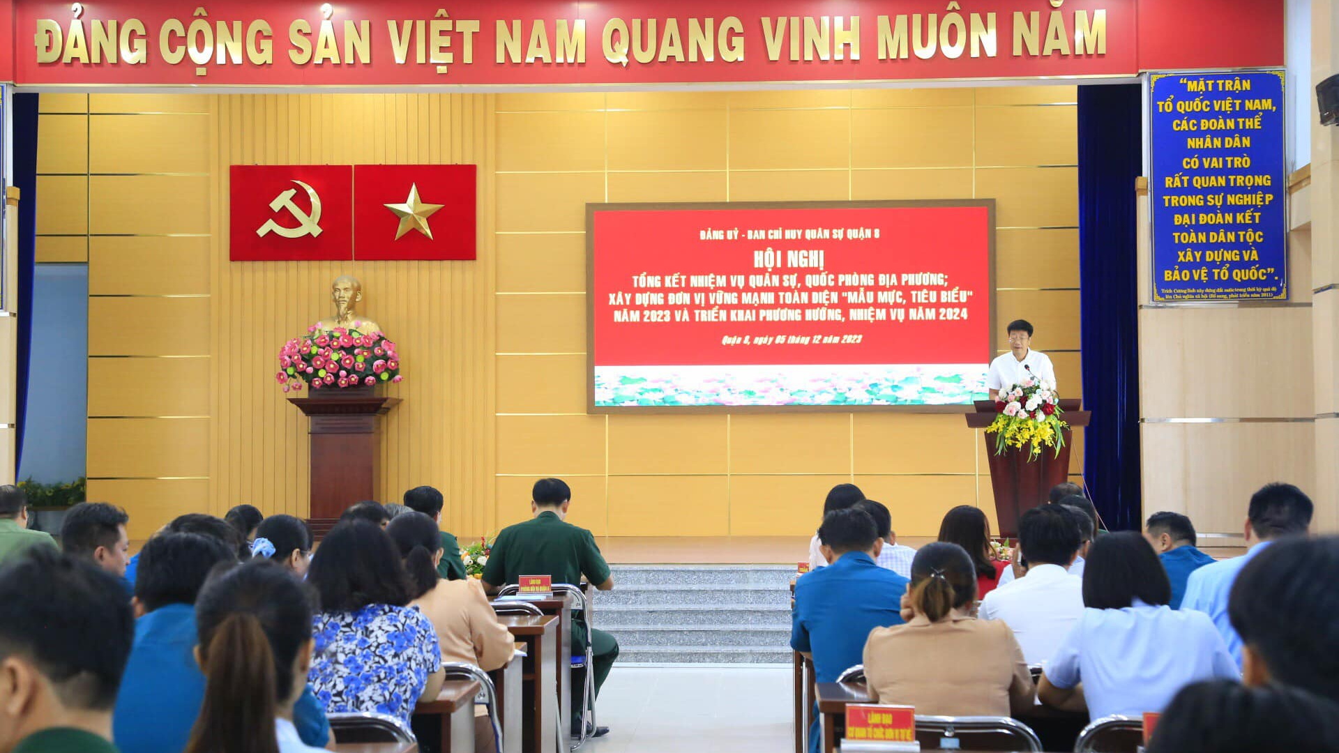 Sáng ngày 05/12, Ban Chỉ huy Quân sự Quận 8 tổ chức hội nghị tổng kết nhiệm vụ quân sự, quốc phòng địa phương; xây dựng đơn vị vững mạnh toàn diện "Mẫu mực, tiêu biểu" năm 2023 và triển khai phương hướng, nhiệm vụ năm 2024.