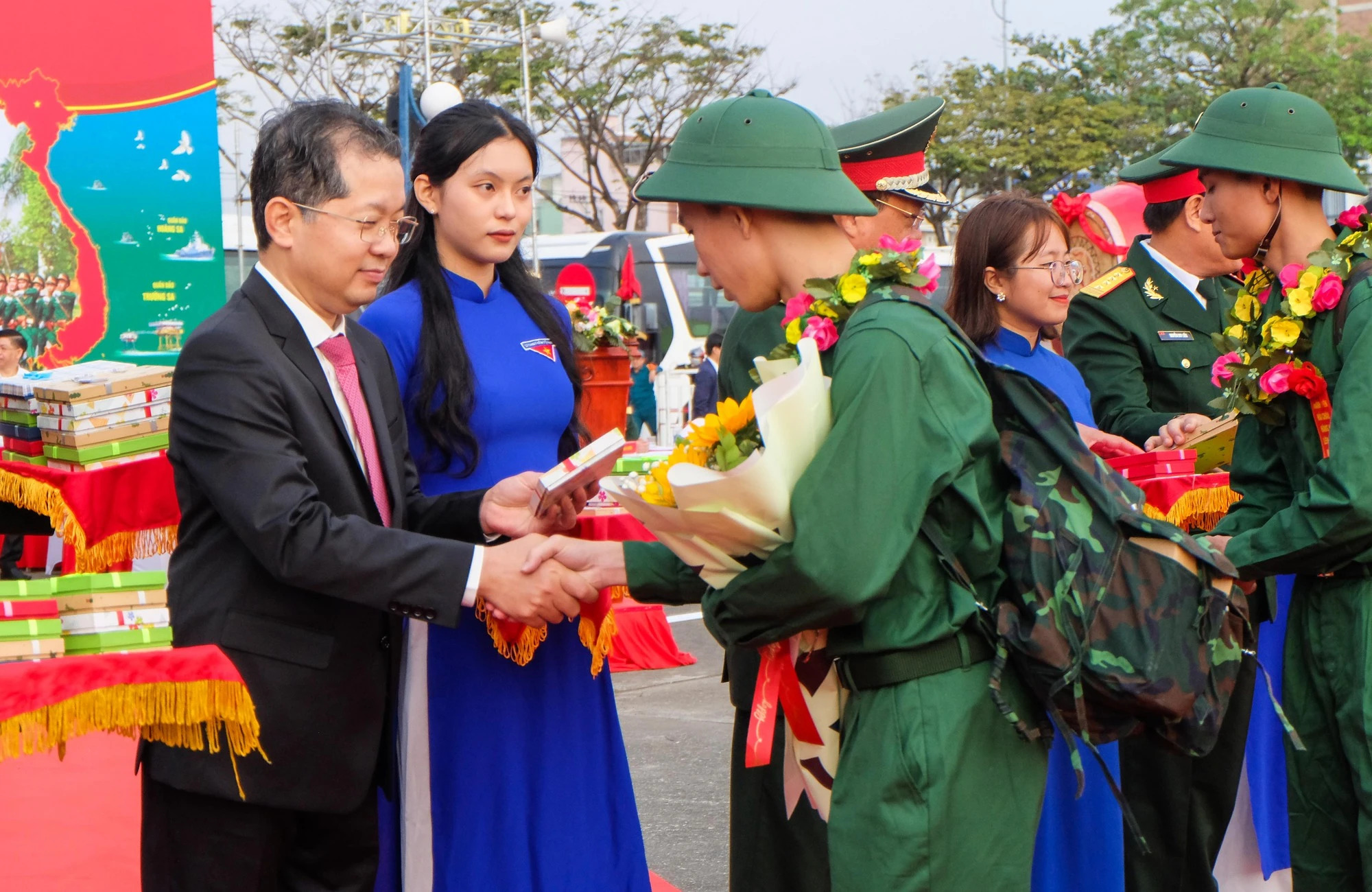 Bí thư Thành ủy Đà Nẵng Nguyễn Văn Quảng tiễn thanh niên lên đường nhập ngũ thực hiện nghĩa vụ quân sự