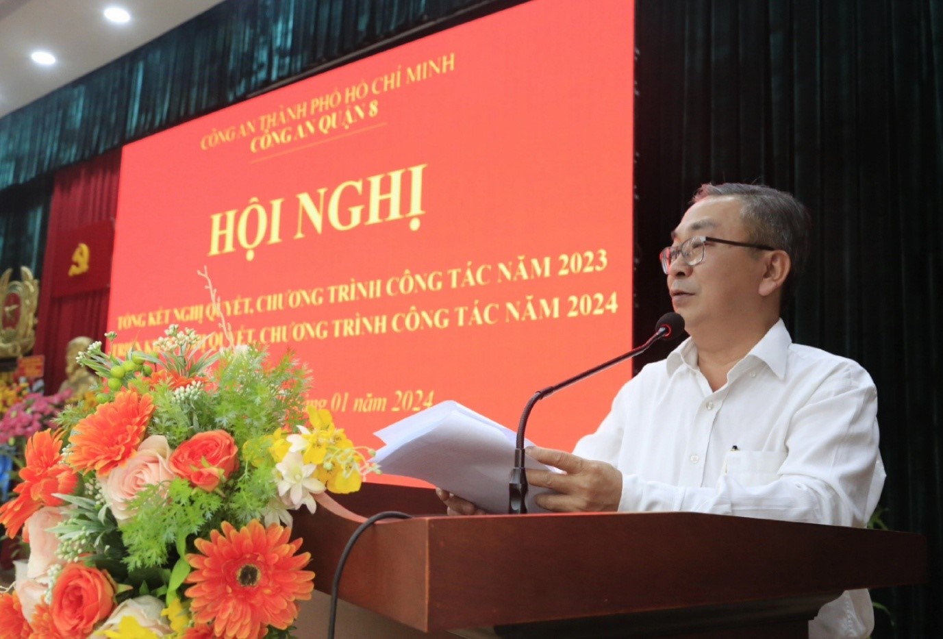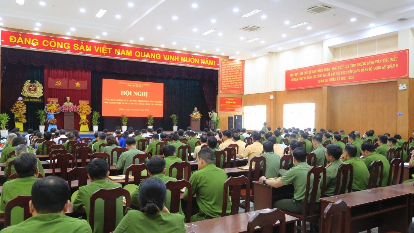 Chiều ngày 10/01/2024, Công an Quận 8 tổ chức hội nghị tổng kết nghị quyết, chương trình công tác năm 2023 và triển khai nghị quyết, chương trình công tác năm 2024.