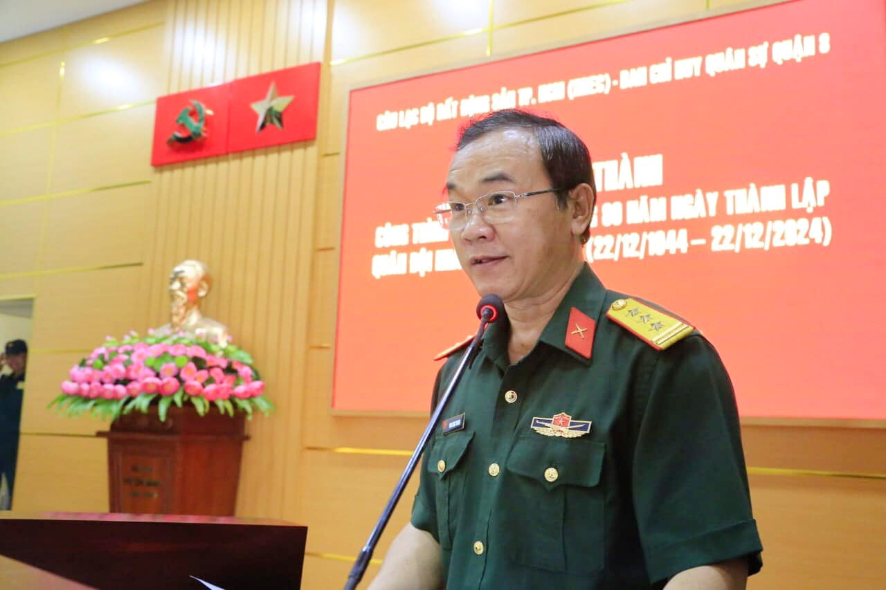 Tại buổi Lễ khánh thành, thay mặt Đảng uỷ, Ban CHQS quận, Thượng tá Đinh Ngọc Thanh đã gửi lời tri ân đến đồng chí Trương Hoà Bình, đồng chí Phan Kiều Thanh Hương, Phó Giám đốc Sở Nội Vụ TP. HCM và ông Nguyễn Quốc Bảo đã luôn dành tình cảm đặc biệt cho cán bộ, chiến sĩ LLVT Quận 8; hỗ trợ đơn vị hoàn thành Công trình chào mừng kỷ niệm 80 năm Ngày thành lập Quân đội nhân dân Việt Nam (22/12/1944 - 22/12/2024).