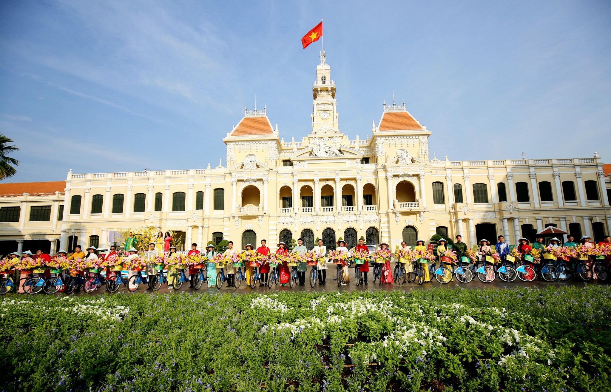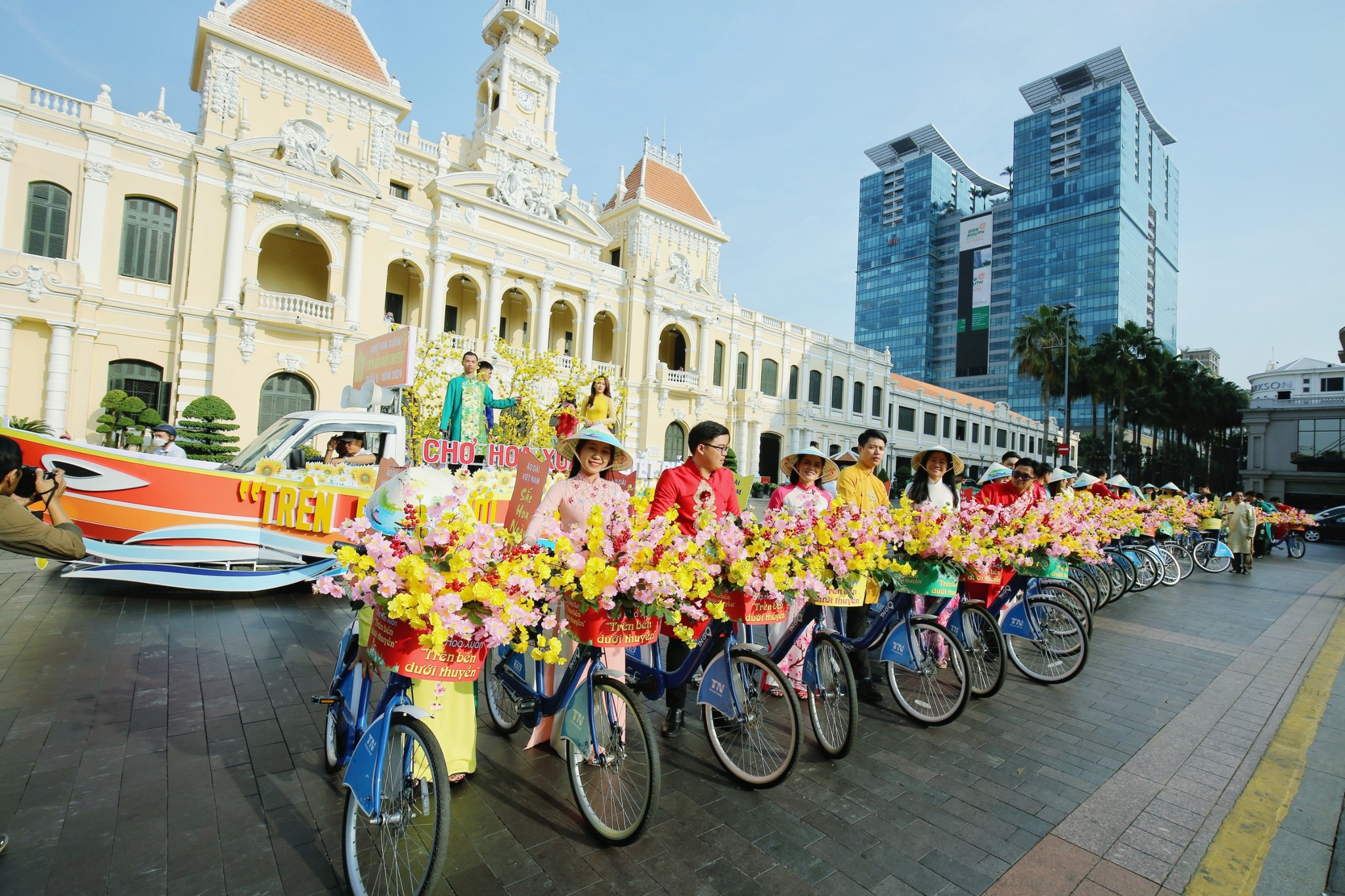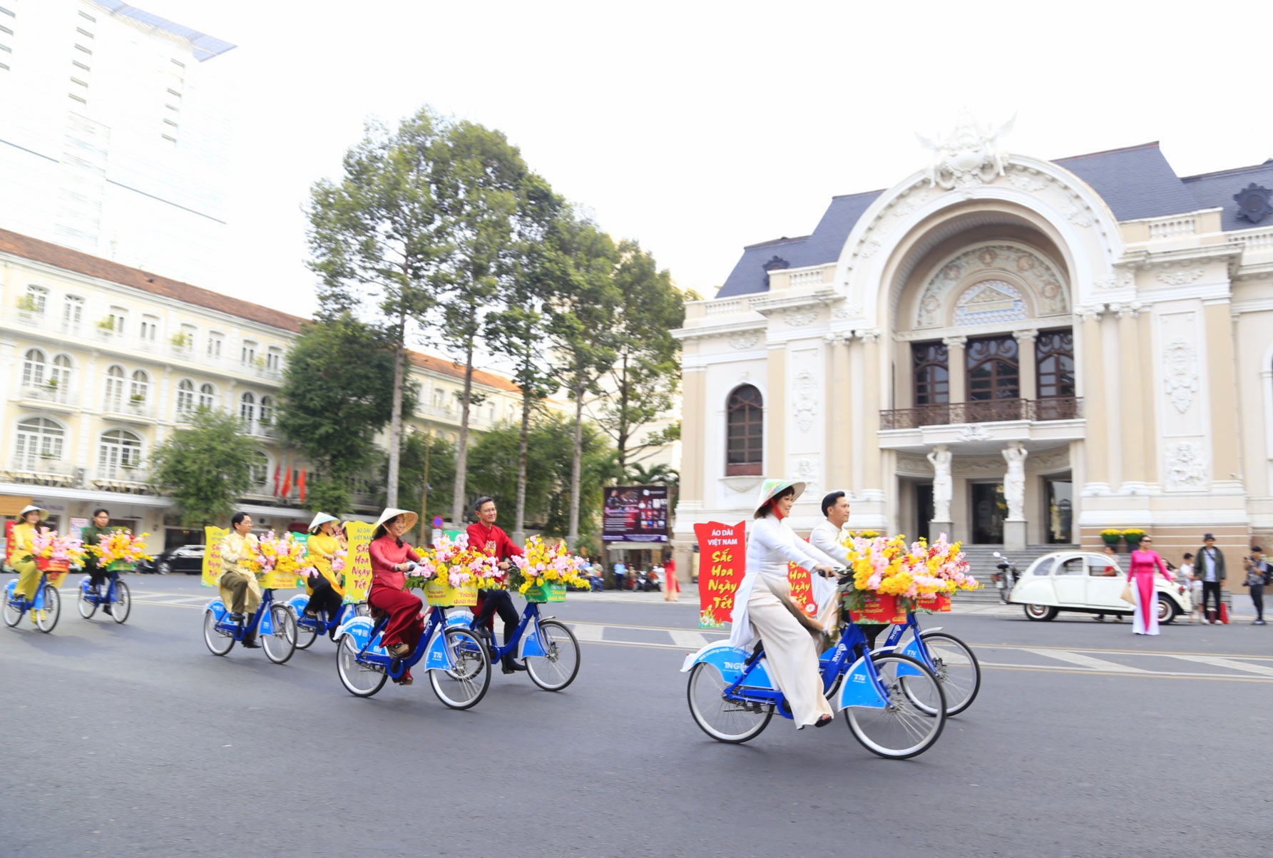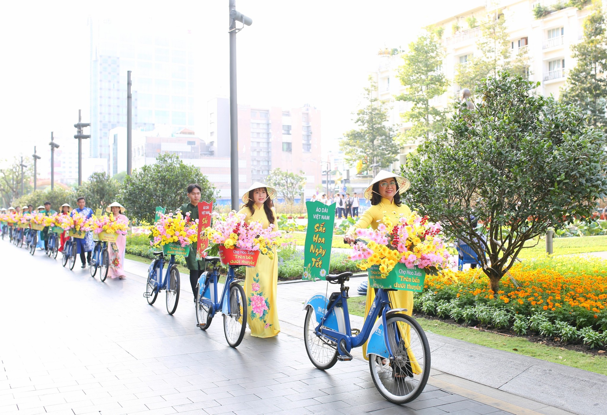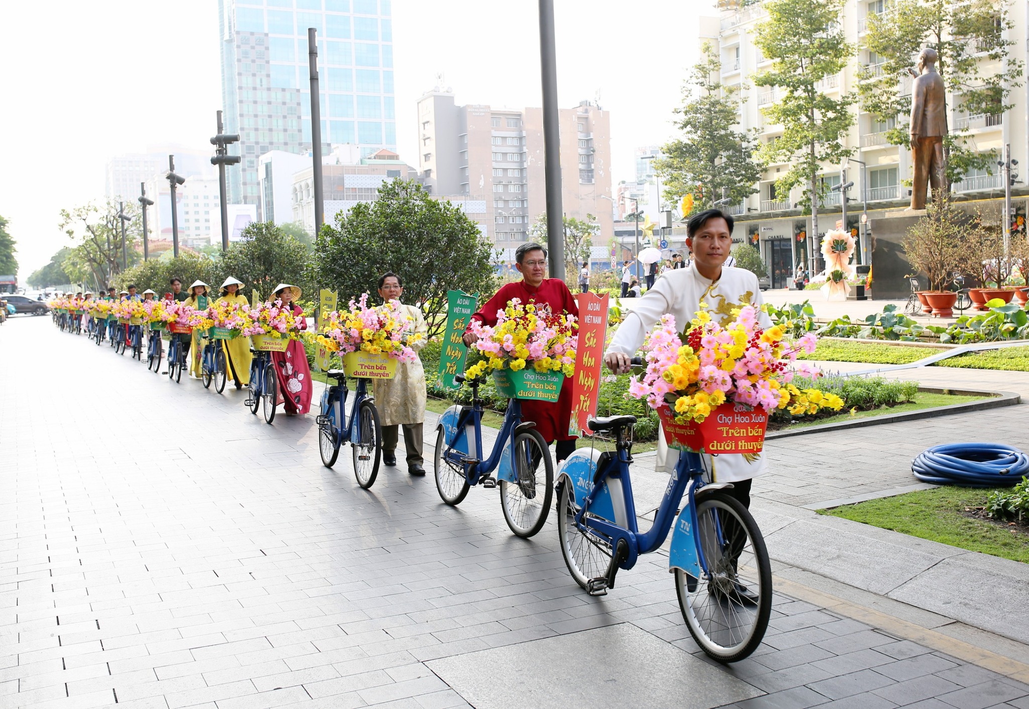 Sau lễ dâng hoa, các thành viên trong đoàn thực hiện diễu hành xe đạp hoa theo lộ trình: phố đi bộ Nguyễn Huệ - đường Lê Lợi - đường Pasteur - đường Lý Tự Trọng - đường Đồng Khởi - đường Tôn Đức Thắng - đường Nguyễn Huệ, nhằm tuyên truyền, quảng bá các hoạt động hấp dẫn tại Chợ Hoa Xuân "Trên bến dưới thuyền" Quận 8 đến gần với người dân Thành phố.
