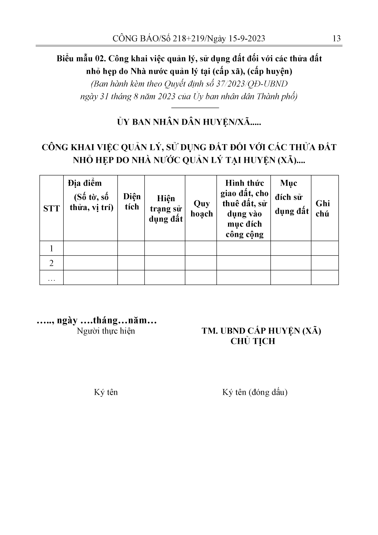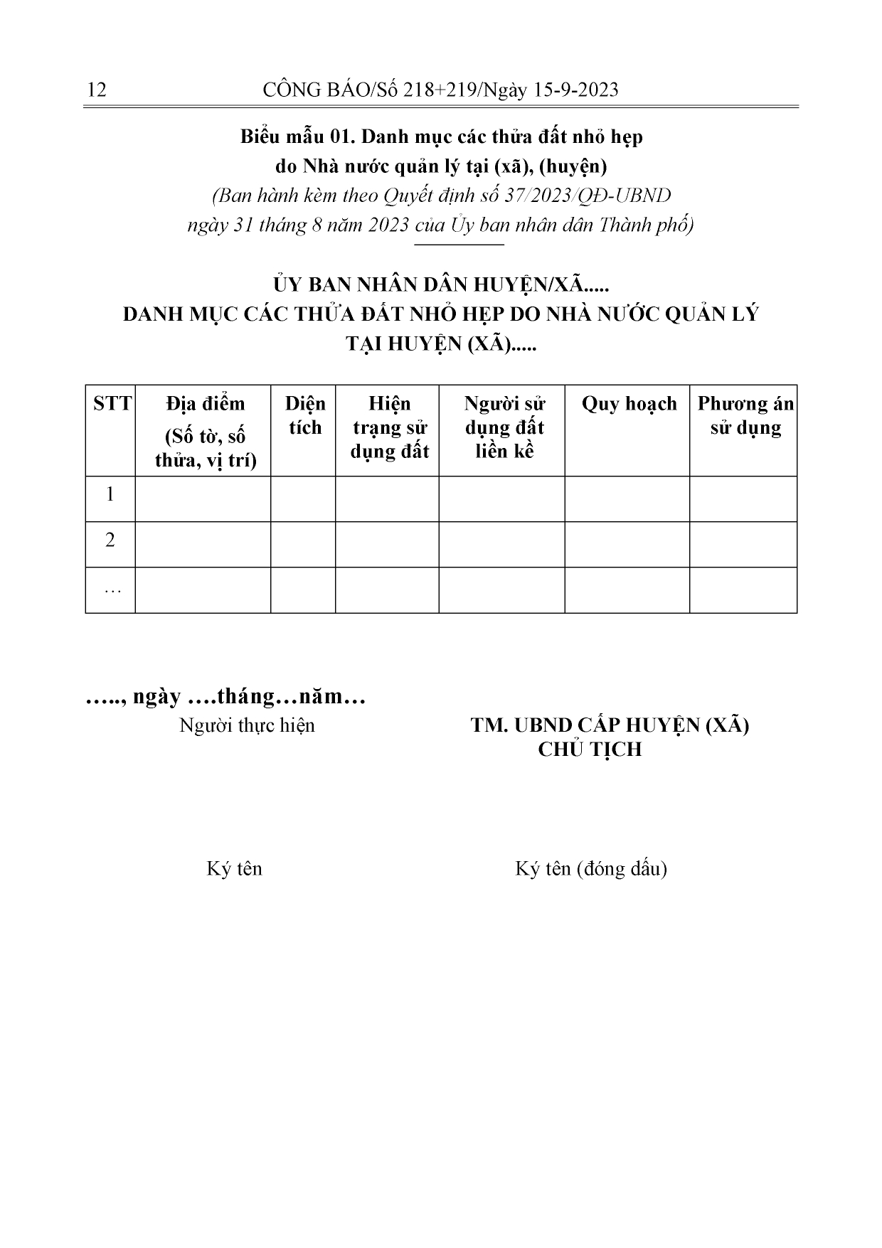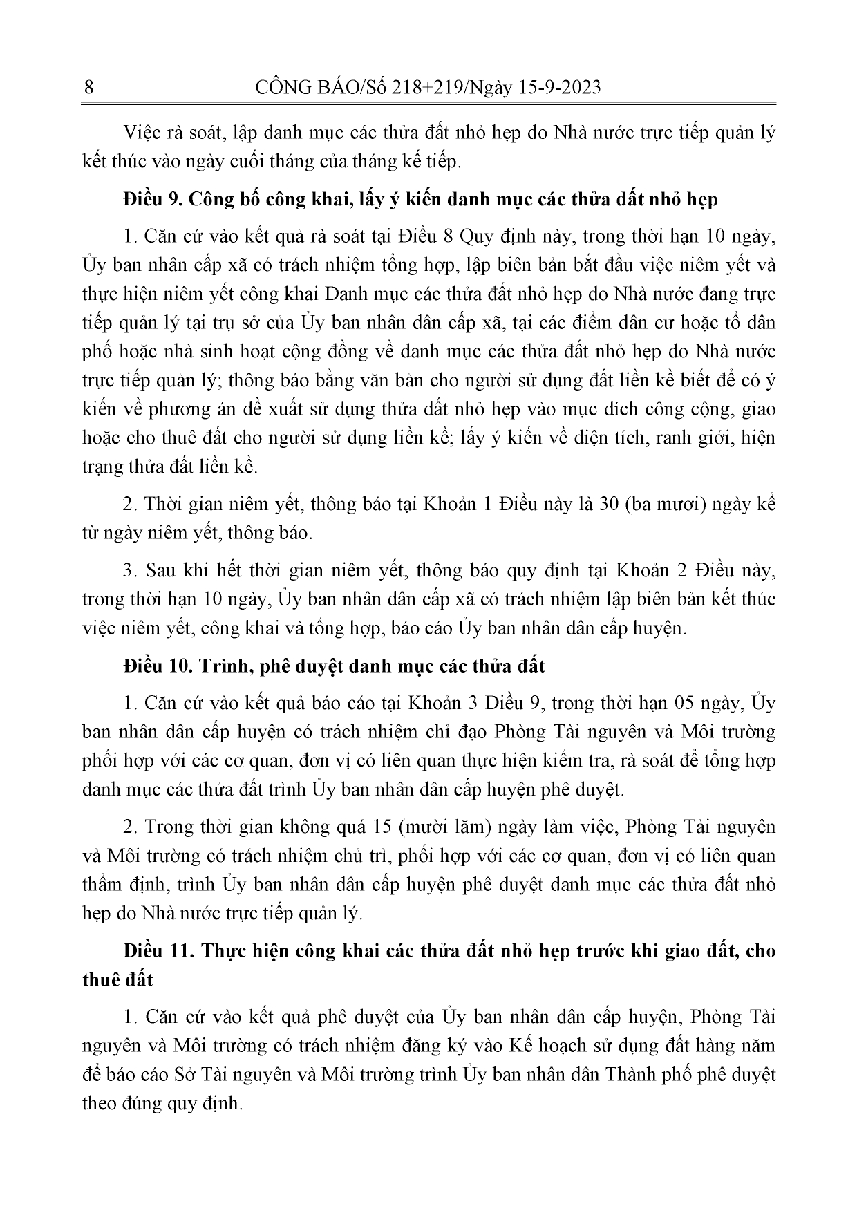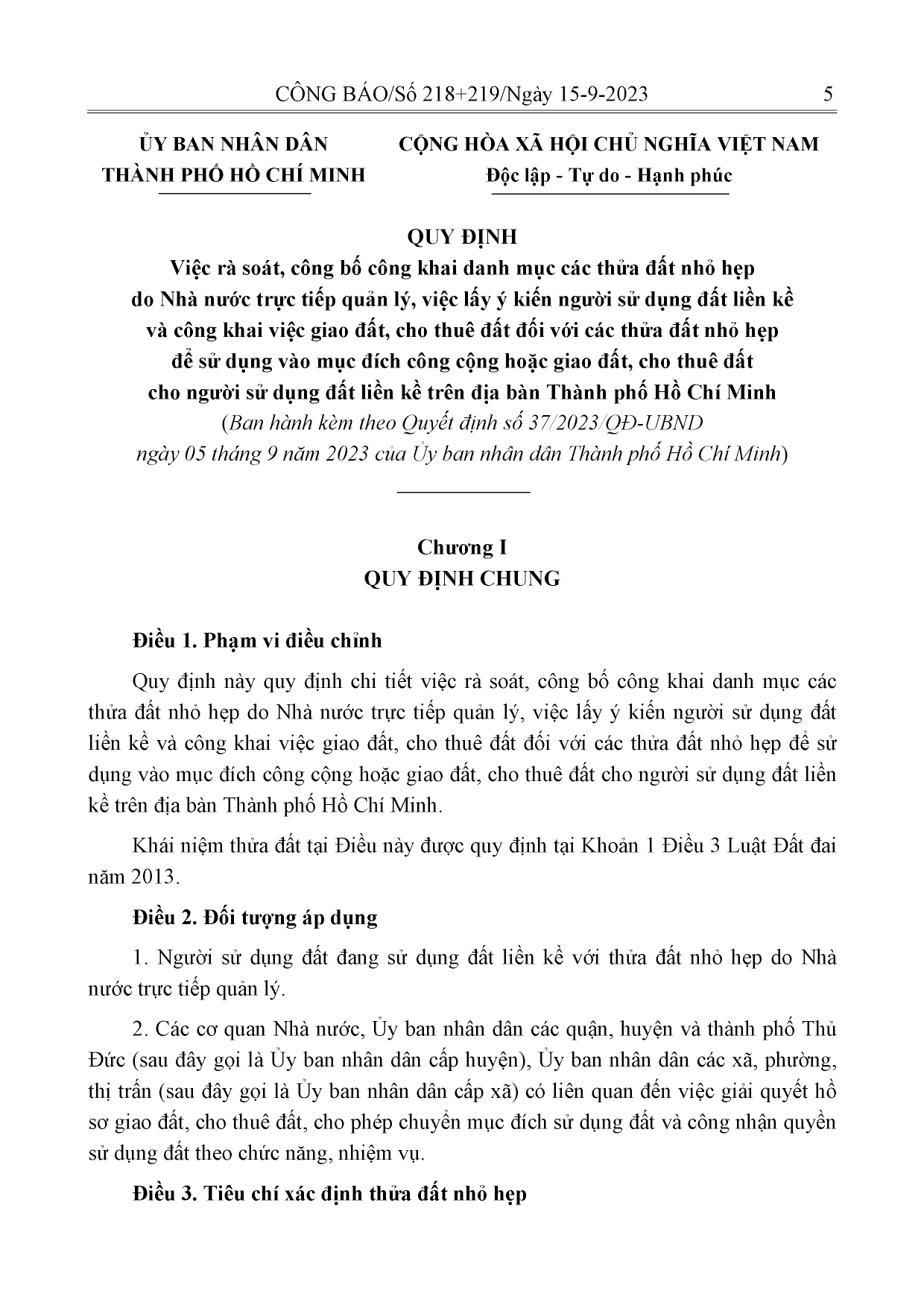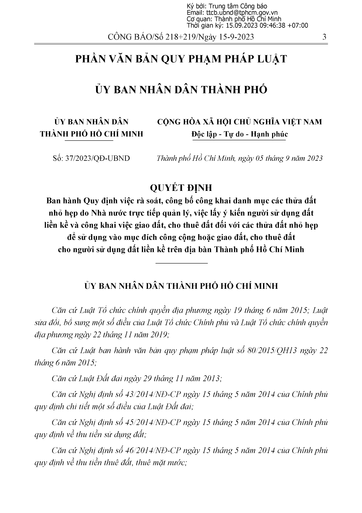 Quyết định 37/2023/QĐ-UBND Ban hành quy định việc rà soát, công bố công khai danh mục các thửa đất nhỏ hẹp do nhà nước trực tiếp quản lý
