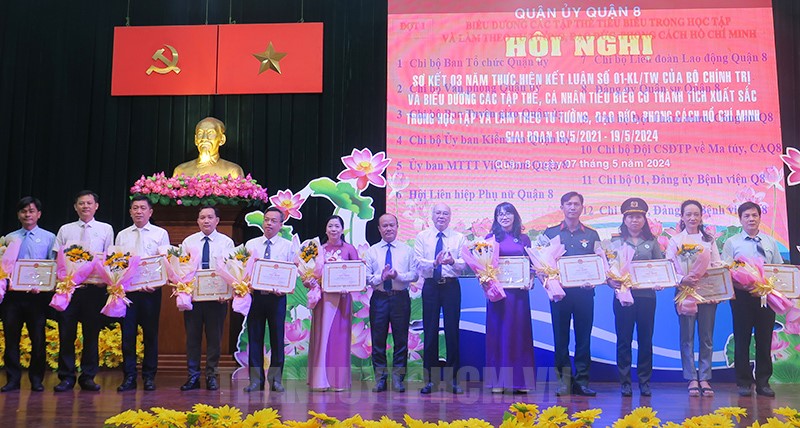 Dịp này, Quận ủy Quận 8 tổ chức biểu dương, khen thưởng 50 tập thể, 93 cá nhân tiêu biểu có thành tích xuất sắc trong học tập và làm theo tư tưởng, đạo đức, phong cách Hồ Chí Minh, giai đoạn 19/5/2021 - 19/5/2024.