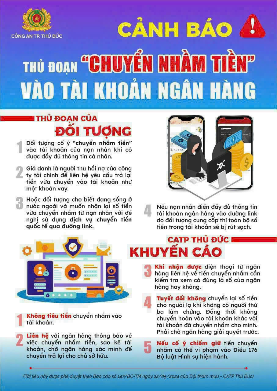 CẢNH BÁO THỦ ĐOẠN CHUYỂN NHẦM TIỀN VÀO TÀI KHOẢN NGÂN HÀNG
