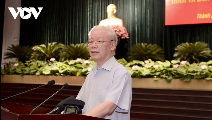 Sự quan tâm của đồng chí Tổng Bí thư còn thể hiện cụ thể trong những thời điểm khó khăn nhất của thành phố về chống dịch COVID-19. Mặc dù sức khỏe và điều kiện chống dịch không cho phép, đồng chí Tổng Bí thư đã điện thoại, trao đổi trực tiếp với đồng chí Bí thư Thành ủy để dặn dò, chỉ đạo một cách rất sâu sát, để Thành phố chủ động trong phòng, chống dịch, đảm bảo an toàn tính mạng của Nhân dân, ổn định tình hình kinh tế, an ninh trật tự của Thành phố. Tổng Bí thư chia sẻ cùng Đảng bộ, chính quyền và Nhân dân Thành phố trong phòng, chống dịch cho thấy trách nhiệm và tình cảm đặc biệt mà người đứng đầu đất nước, tạo sự động viên, cổ vũ to lớn đối với Thành phố trong phòng, chống dịch chưa có tiền lệ này.