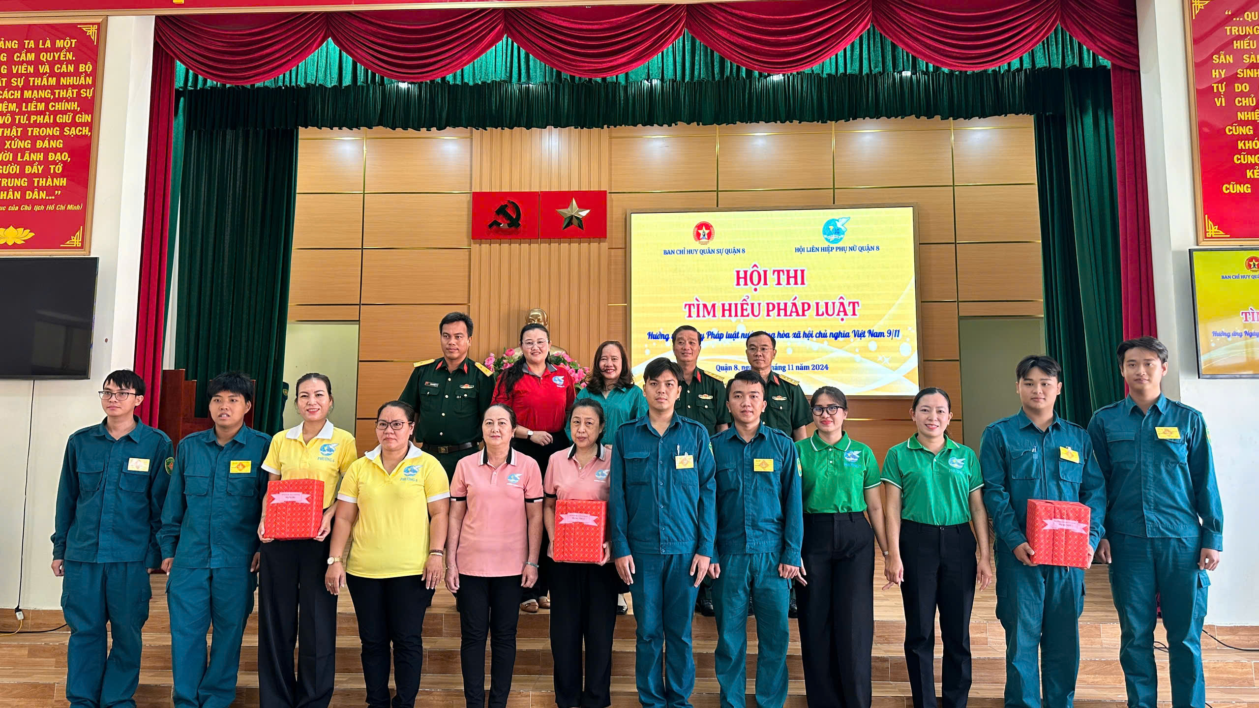 (Thanhuytphcm.vn)- Sáng ngày 07/11/2024, Ban Chỉ huy Quân sự (CHQS) Quận 8 phối hợp Hội Liên hiệp Phụ nữ (LHPN) Quận 8 tổ chức nhiều hoạt động thiết thực, ý nghĩa, sôi nổi Hưởng ứng “Ngày Pháp luật Nước Cộng hòa xã hội chủ nghĩa Việt Nam” năm 2024 với sự tham gia của 180 đại biểu là đại diện Ban Tuyên huấn/Phòng Chính trị, các đồng chí trong Đảng ủy - Ban CHQS quận, các đồng chí là Sỹ quan, Quân nhân chuyên nghiệp, Chiến sĩ Dân quân Thường trực (DQTT)/Ban CHQS quận; Hội viên Hội LHPN Quận 8; Chỉ huy trưởng, chiến sĩ DQTT/Ban CHQS 16 phường.
