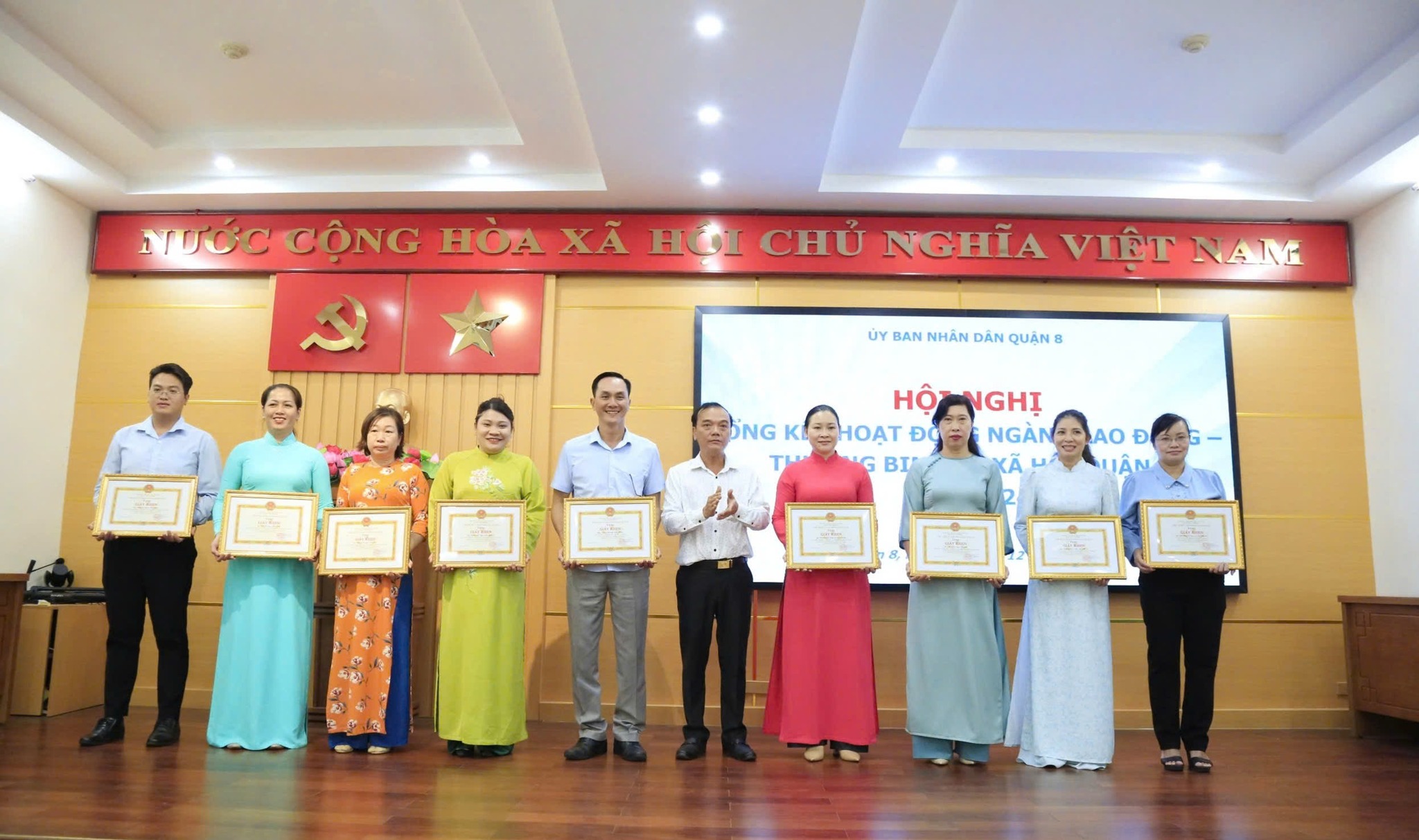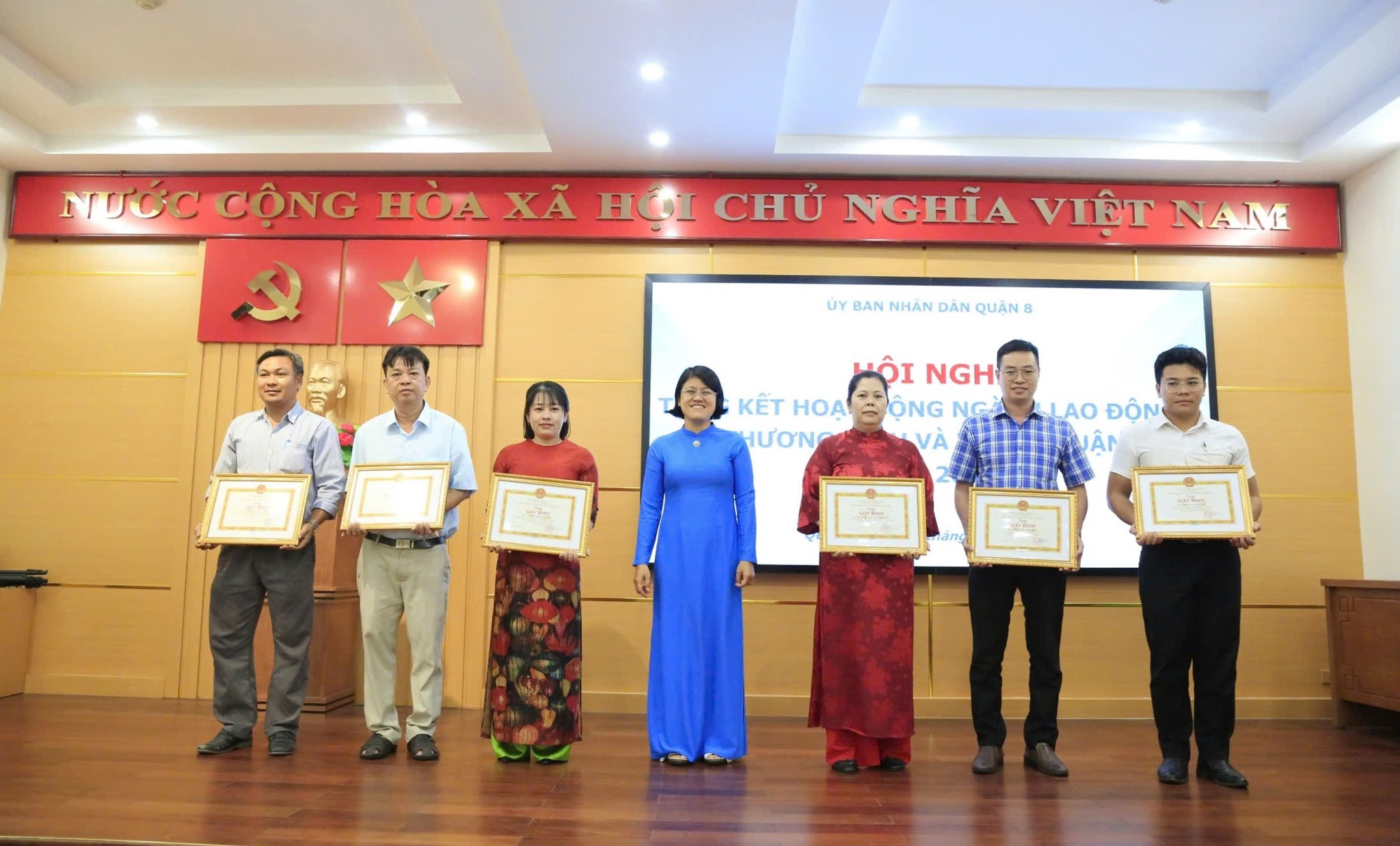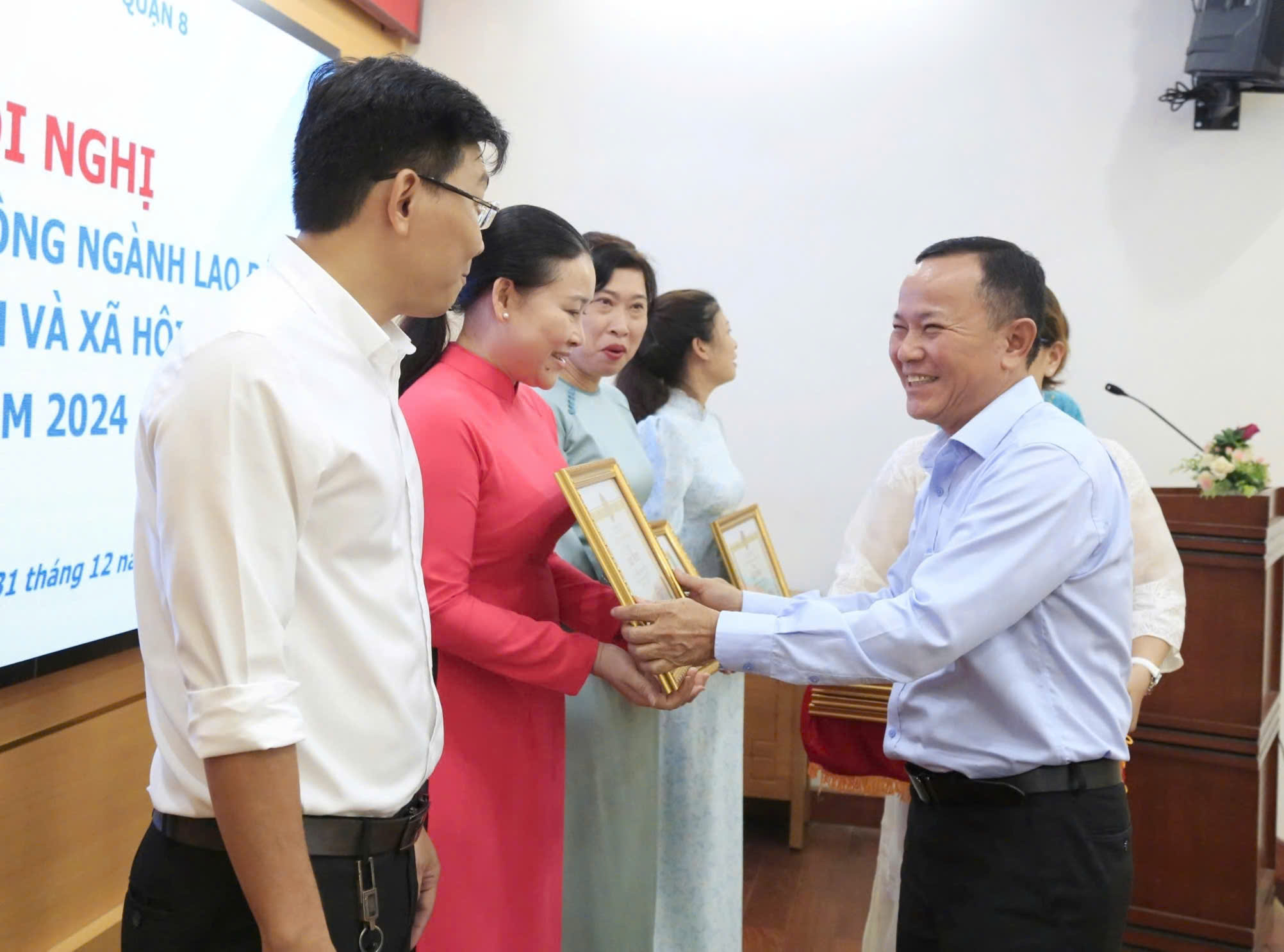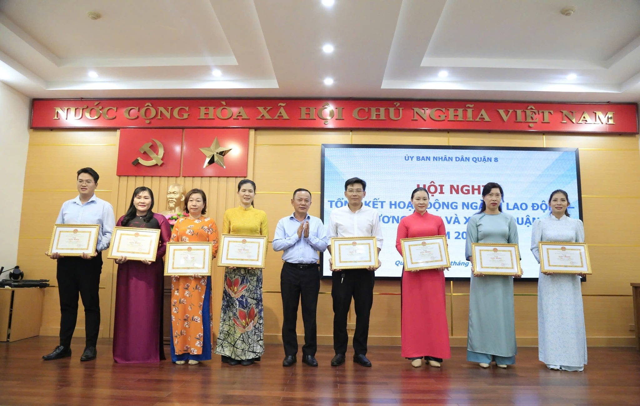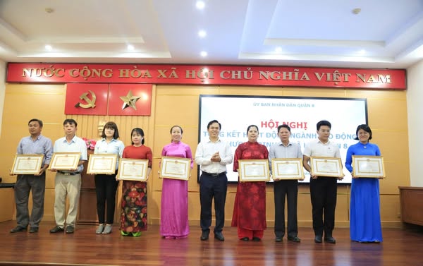 Dịp này, Ủy ban nhân dân Quận 8 đã khen thưởng 18 tập thể và 19 cá nhân có thành tích tiêu biểu trong lĩnh vực lao động, người có công và xã hội năm 2024.
