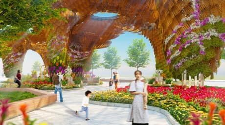 Đường hoa Nguyễn Huệ Tết Nguyên đán 2025 mang chủ đề Non sông gấm hoa, vui xuân thái hòa, gồm ba phân đoạn Kết đoàn, Chuyển mình và Phát triển, thể hiện những chặng đường lịch sử của đất nước.