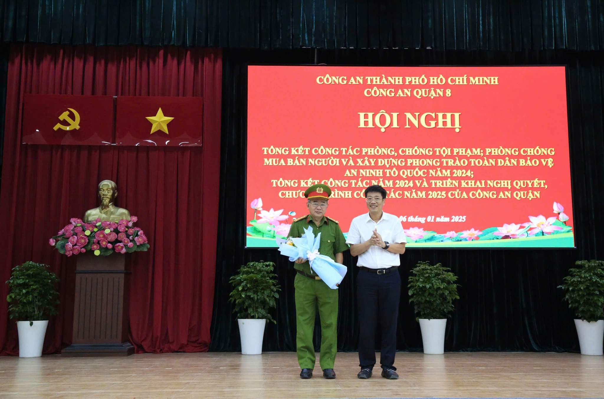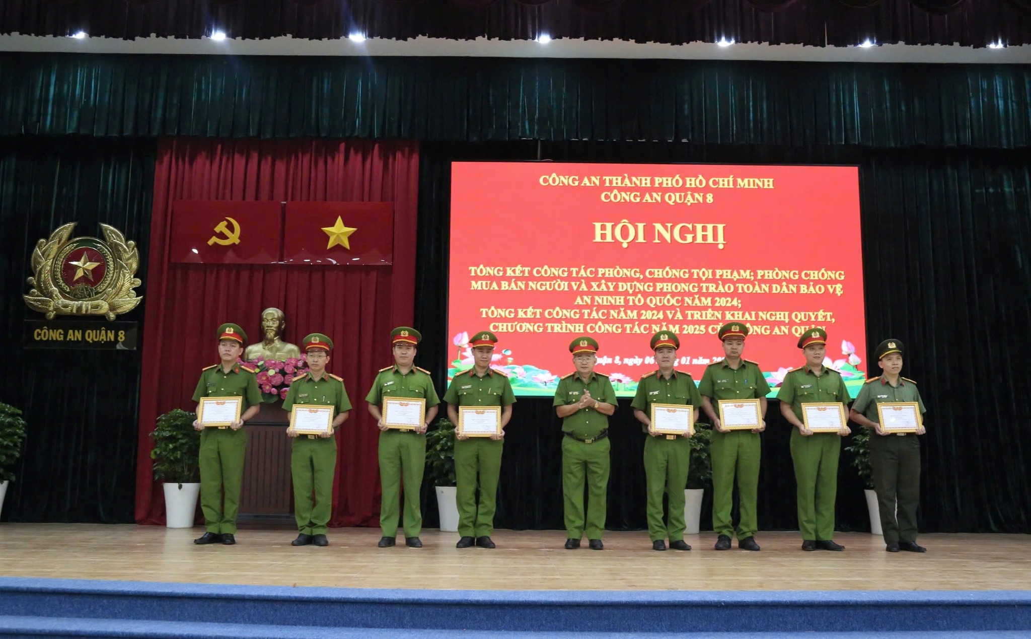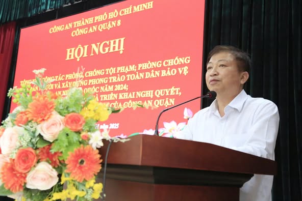 Chiều ngày 06/01/2025, Công an Quận 8 tổ chức hội nghị tổng kết công tác phòng, chống tội phạm; phòng, chống mua bán người và xây dựng phong trào toàn dân bảo vệ an ninh tổ quốc năm 2024; tổng kết công tác năm 2024 và triển khai nghị quyết, chương trình công tác năm 2025.
