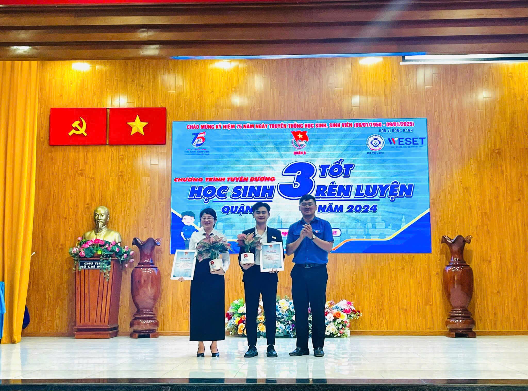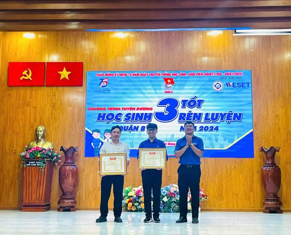 Chương trình tuyên dương "Học sinh 3 tốt - Học sinh 3 rèn luyện Quận 8” năm 2024 đã tuyên dương 67 gương Học sinh 3 tốt và 12 gương Học sinh 3 rèn luyện. Các gương điển hình được tuyên dương là những chiến sĩ tình nguyện, cán bộ Đoàn giỏi, tham gia nhiều hoạt động phong trào phục vụ xã hội.
