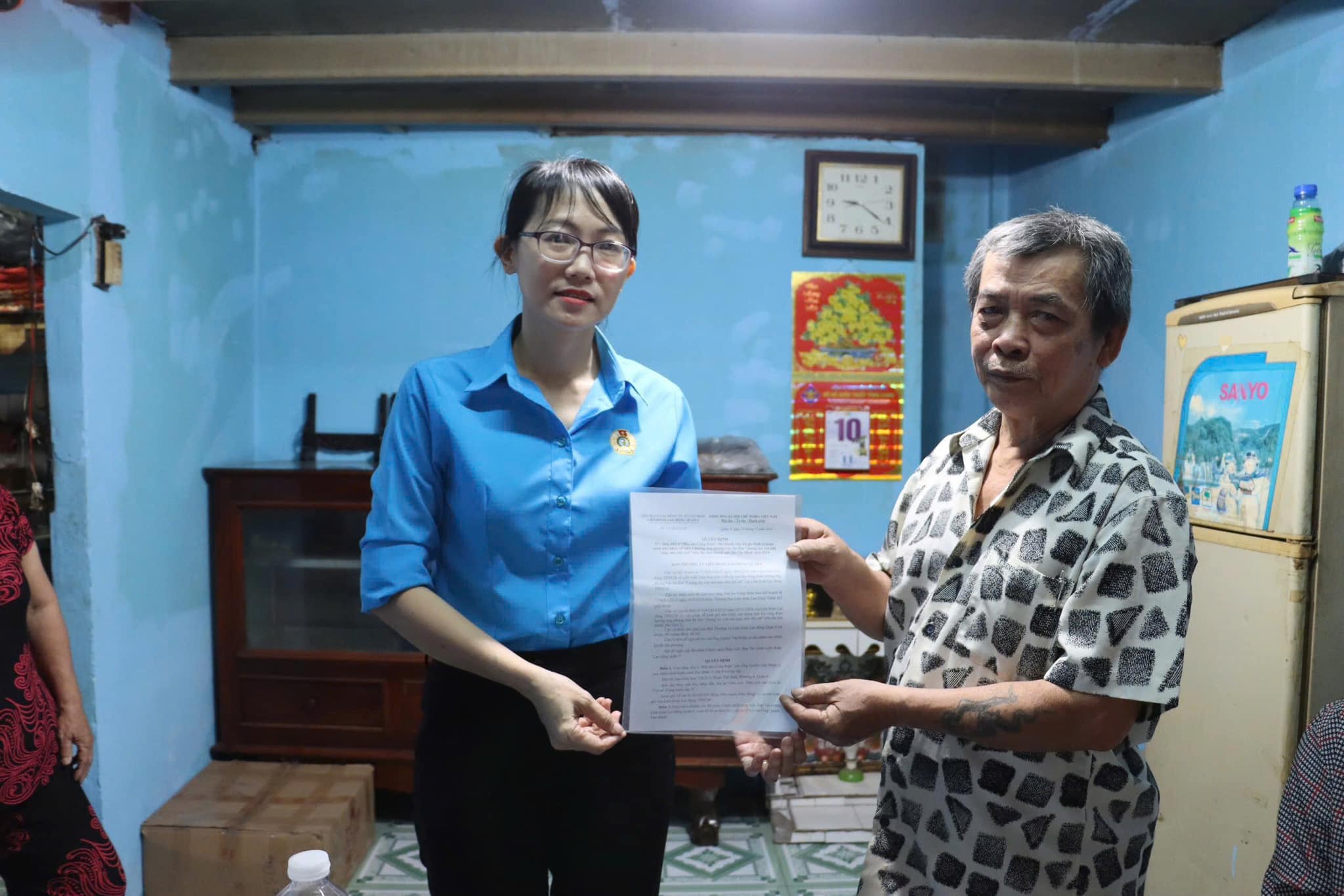 Tại buổi lễ, đồng chí Đoàn Ngọc Diễm Lan đã trao quyết định công nhận Mái ấm công đoàn và quà tặng của Liên đoàn Lao động Quận 8 đến gia đình ông Quách Văn Minh và ông Phan Văn Sang (tổng giá trị Mái ấm công đoàn là 60 triệu đồng/căn).