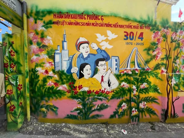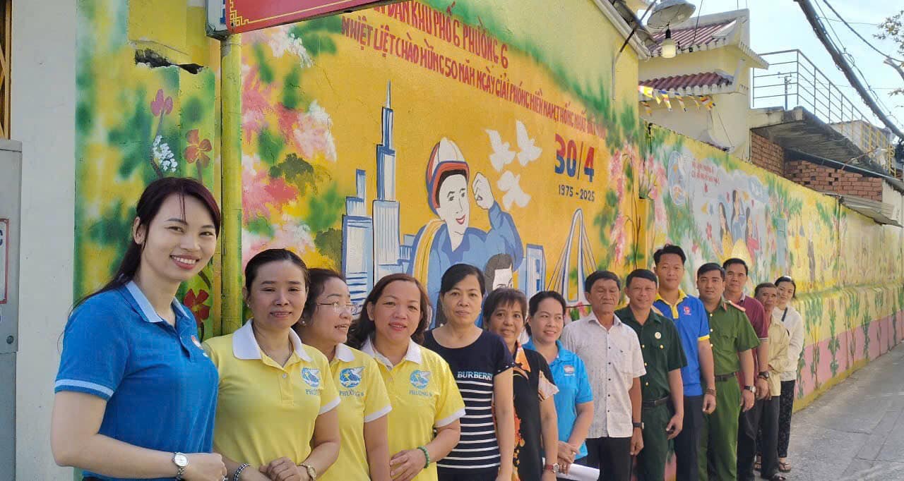 Công trình được thực hiện trên 100m2 tường với những bức tranh mang nhiều chủ đề về: Giữ gìn vệ sinh môi trường, bình đẳng giới, vui đón Tết ẤT Tỵ và tinh thần phấn khởi của Nhân dân chào mừng 50 năm giải phóng Miền Nam, với tổng trị giá 15 triệu đồng do Nhân dân Khu phố 6 cùng đóng góp.