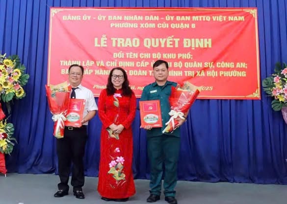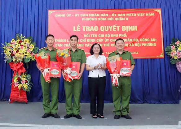 Tại buổi lễ, Đảng ủy phường Xóm Củi trao quyết định thành lập Chi bộ Quân sự phường Xóm Củi, quyết định chỉ định Chi ủy Chi bộ Quân sự Phường Xóm Củi nhiệm kỳ 2022 - 2025; trao Quyết định thành lập Chi bộ Công an phường Xóm Củi, quyết định chỉ định Chi ủy Chi bộ Công an Phường Xóm Củi nhiệm kỳ 2022 - 2025.