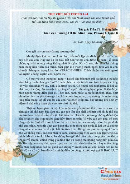 THƯ VIẾT GỬI TƯƠNG LAI - BÀI VIẾT ĐẠT GIẢI BA HỘI THI "QUẬN 8 ĐẾN VỚI HÀNH TRÌNH VĂN HÓA TPHCM" LẦN THỨ II NĂM 2024