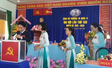 Ảnh: Đại biểu bỏ phiếu bầu Ban Chấp hành Đảng bộ Phường 10 nhiệm kỳ 2015 – 2020