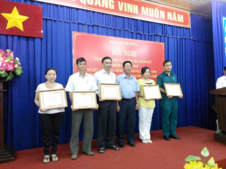 trao giấy giấy khen 05 tập và 03 cá nhân có thành tích xuất sắc trong công tác kiểm tra, giám sát của Đảng bộ phường nhiệm kỳ 2010-2015.