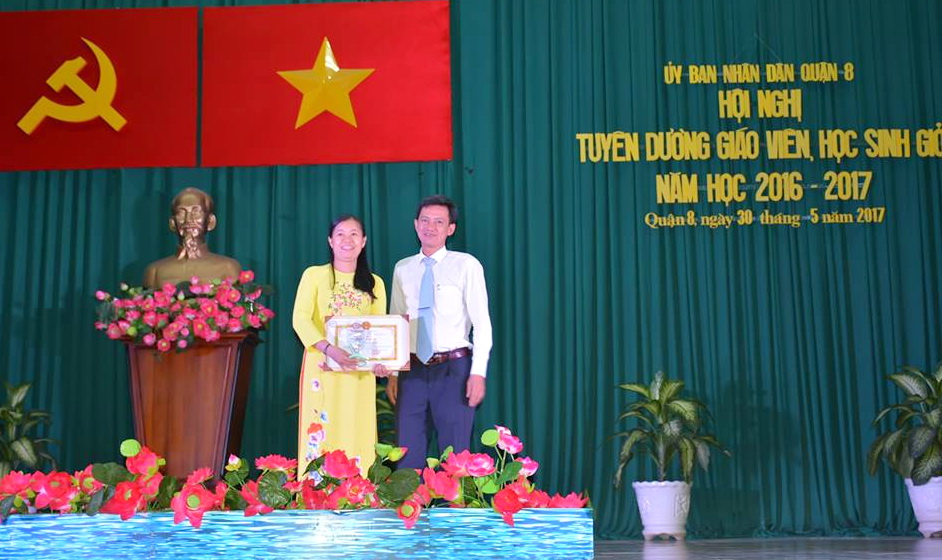 Chiều ngày 30 tháng 5 năm 2017, Ủy ban nhân dân Quận 8 tổ chức Hội nghị Tuyên dương giáo viên, học sinh giỏi năm học 2016 – 2017. Đến tham dự hội nghị có Ông Lê Hoài Nam – Phó Giám đốc Sở Giáo dục và Đào tạo Thành phố Hồ Chí Minh; Bà Nguyễn Thị Gái – Phó Chủ tịch Công đoàn giáo dục - Sở Giáo dục và Đào tạo Thành phố Hồ Chí Minh; Ông Hồ Phú Bạc – Trưởng phòng Giáo dục thường xuyên - Sở Giáo dục và Đào tạo Thành phố Hồ Chí Minh; Ông Võ Thiện Cang – Phó Giám đốc Trung tâm thông tin và Chương trình giáo dục - Sở Giáo dục và Đào tạo Thành phố Hồ Chí Minh; Ông Đỗ Hữu Trí – Phó Chủ tịch thường trực Hội đồng nhân dân Quận 8; Ông Nguyễn Thanh Sang – Phó Chủ tịch Ủy ban nhân dân Quận 8; Ông Phạm Ngọc Muôn – Trưởng ban Dân vận Quận ủy Quận 8; Ông Mai Hồng Phong – Phó Chủ tịch thường trực Ủy ban Mặt trận Tổ quốc Việt Nam Quận 8; Bà Trần Thị Thu Trang – Trưởng phòng Văn hóa thông tin Quận 8; Ông Dương Văn Dân – Trưởng phòng Phòng Giáo dục và Đào tạo Quận 8; lãnh đạo Phòng Giáo dục và Đào tạo Quận 8; Cán bộ quản lý, Chủ tịch công đoàn của các cơ sở giáo dục trên địa bàn Quận 8, cùng 56 thầy cô giáo dạy giỏi và 632 học sinh giỏi năm học 2016-2017 được tuyên dương.