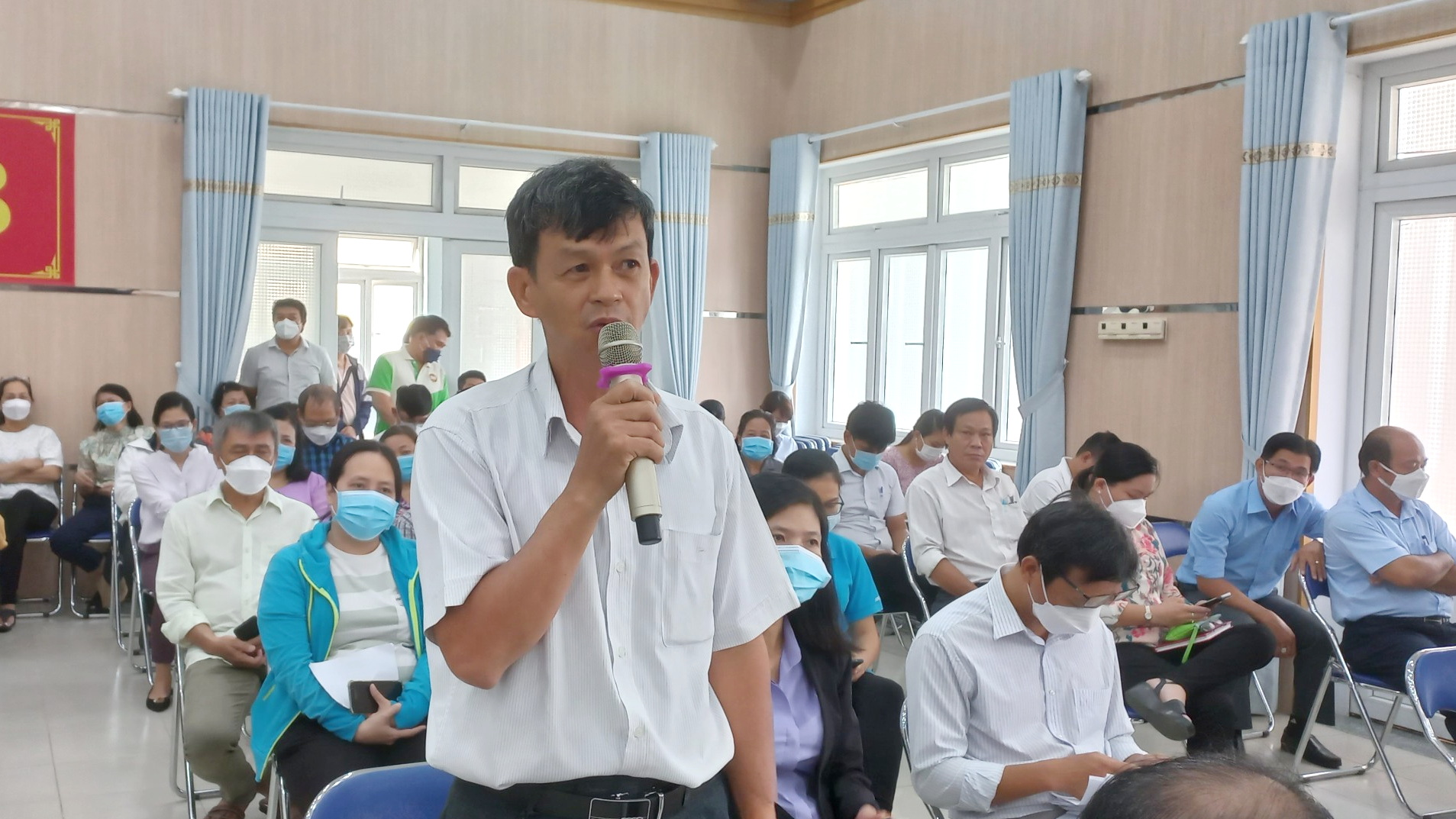 Cử tri phát biểu kiến nghị tại buổi tiếp xúc.