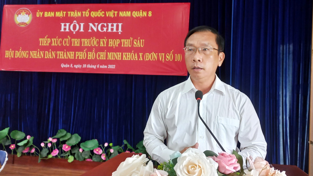 Kết thúc hội nghị, ông Tăng Chí Thượng - đại diện Tổ Đại biểu Hội đồng nhân dân Thành phố khóa X tiếp thu các kiến nghị của cử tri đã đóng góp, Tổ đại biểu sẽ đề đạt ý kiến, nguyện vọng của cử tri Quận 8 đến các cơ quan chức năng liên quan và tăng cường giám sát việc thực hiện giải quyết kiến nghị cử tri.