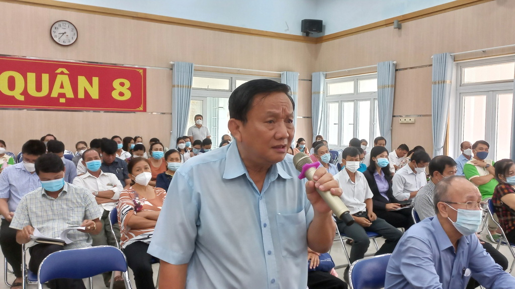 Tại buổi tiếp xúc, hội nghị đã ghi nhận ý kiến đóng góp của 16 cử tri phát biểu xoay quanh các nội dung liên quan đến: công tác đẩy nhanh tiến độ thực hiện các dự án nâng cấp đô thị trên địa bàn Phường 4, 5, 15 và 16; có văn bản cụ thể về việc xóa bỏ các dự án quy hoạch treo; đầu tư nâng cấp hệ thống giao thông tại các tuyến đường chính như Tạ Quang Bửu, nhánh lưu thông từ cầu Nguyễn Tri Phương sang đường Bình Đông Phường 11; di dời giải phóng mặt bằng; vệ sinh môi trường; chương trình và giá bán sách giáo khoa; chế độ phụ cấp cho cán bộ Tổ dân phố; việc chi trả chế độ mai táng phí cho người mất do dịch Covid-19 tại cộng đồng dân cư...