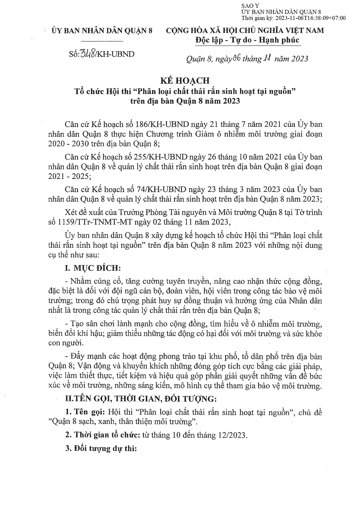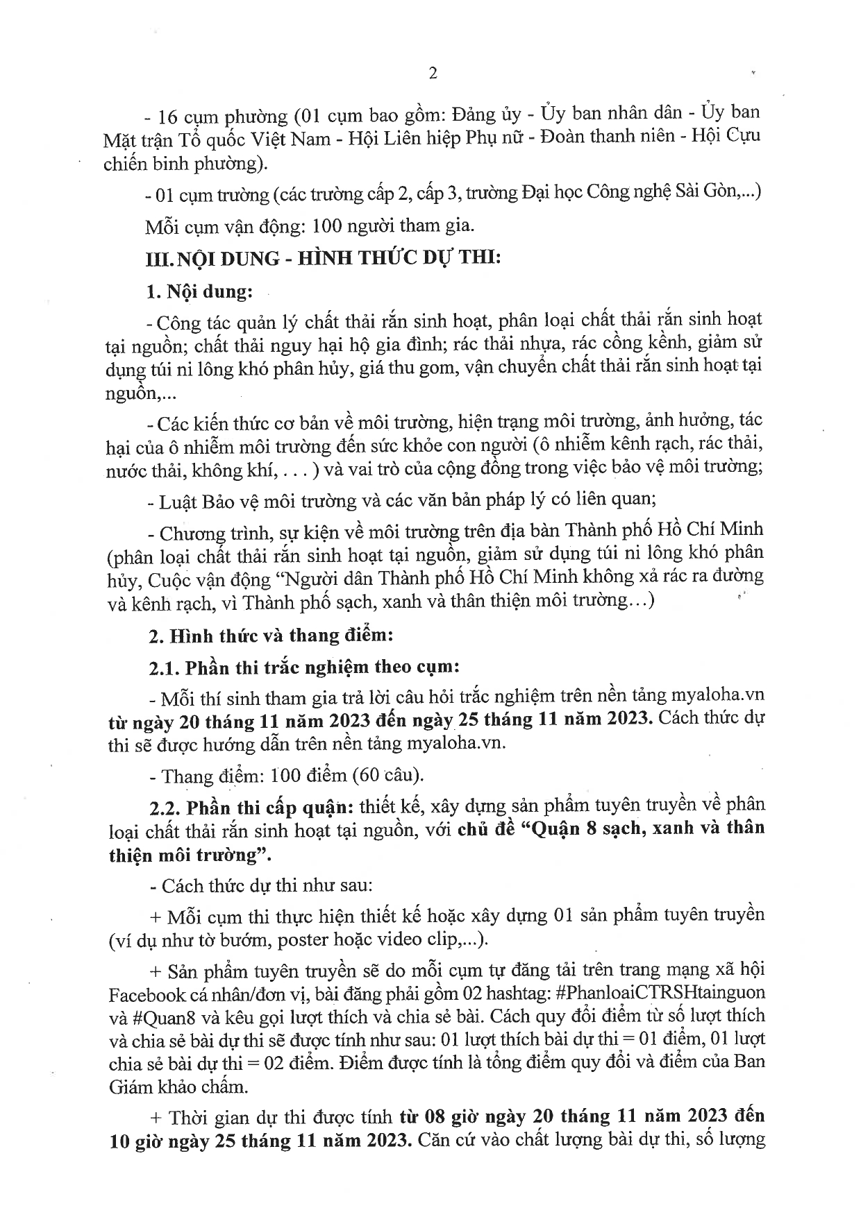 Hội thi trực tuyến "Phân loại chất thải rắn sinh hoạt tại nguồn" trên địa bàn Quận 8 năm 2023