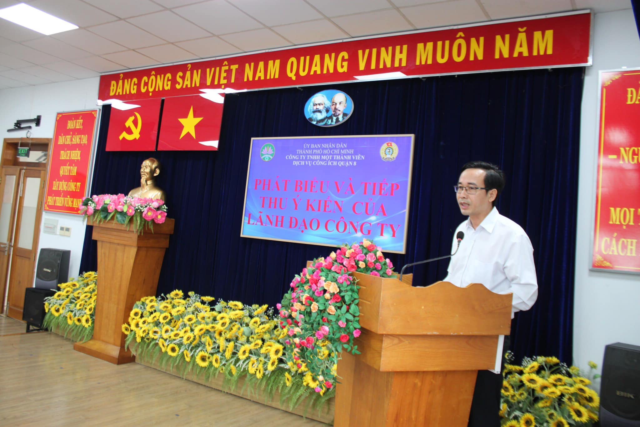 Tiếp thu ý kiến chỉ đạo, đồng chí Phạm Phi Thường, Quận ủy viên, Bí thư Đảng ủy, Chủ tịch Hội đồng thành viên Công ty cảm ơn sự lãnh đạo, chỉ đạo kịp thời, sâu sát của Thường trực Quận ủy - UBND Quận 8, sự hỗ trợ của các sở ngành thành phố, Liên đoàn Lao động quận, các phòng ban chuyên môn Quận và 16 Phường, đặt biệt là sự cố gắng của tập thể, cá nhân trong toàn Đảng bộ và hệ thống chính trị Công ty. Trong thời gian tới Đảng ủy, Ban lãnh đạo Công ty sẽ đoàn kết, cố gắng lãnh đạo Công ty hoàn thành xuất sắc nhiệm vụ chính trị năm 2024, giữ vững việc làm, tăng thu nhập cho người lao động và đưa công ty ngày càng phát triển vững mạnh.